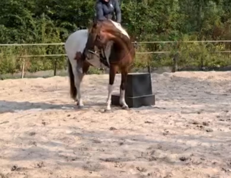 Uma is een heel lief en uniek klein merrie. Zeldzame bloedlijnen (moeder, te zien onder het zadel op de foto's, is een double WC afstammeling van Pied Piper, een van de beste racking horses in de VS, vader is de bekende RHM Risky Business). Uma combineert de spectaculaire gangen van de racking horse met de evenwichtige geest en het lichaam van de RMH. Geregistreerd bij SSHA als veulen, maar kan ook gecertificeerd worden voor SHOBA. Ze wordt in 2024 onder het zadel gebracht, maar is sinds haar geboorte niet bereden vanwege persoonlijke omstandigheden. Ze laat zich gemakkelijk bekappen, is makkelijk te laden en kent veel grondwerk. Ze is gewend om 24/7 buiten te staan, maar zou ook graag 's nachts in de stal staan. Ik zoek een thuis waar ze voldoende buiten kan zijn met haar paardenvrienden. Ze kiest in de wei vaak voor tölt/rack boven de draf. Vanwege dit en haar gebrek aan training beschouw ik haar niet als een beginnerspaard. Neem gerust contact met mij op voor meer informatie.