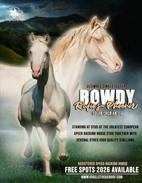 Das Speed Racking Horse ist ein mittelgroßer bis großer natürlicher Tölter, der sich durch sein familienfreundliches Gemüt bei großer Tempovarianz auszeichnet. Wie der Isländer kann die Gangveranlagung von lateral zu diagonal variieren. Unsere Zucht verzichtet auf passige Pferde, so dass sie sich ausnahmslos durch leichtrittigen Tölt in allen Tempi auszeichnen. Damit auch der Renntölt nur Freude macht, ist ein entspanntes Gemüt genauso wichtig wie ein exzellentes Gebäude. Als größter Züchter Europas , der die Rasse nach Europa geholt hat, bieten wir eine Vielzahl interessanter Verkaufspferde, deren Eltern über viele Jahre sorgfältig nach unseren Kriterien Gang, Gemüt und Gesundheit selektiert wurden. Wer leichtrittigen Tölt liebt, ob im Gelände oder auf dem Turnier und ein gesundes, robustes, etwas größeres Gangpferd sucht, findet in unseren Pferden einen Partner fürs Leben mit ganz viel Will-to-Please. Die ersten 3 Bilder beziehen sich auf das hier inserierte Pferd. Eines von vielen tollen Verkaufspferden unserer Zucht. Die restlichen Bilder zeigen unsere Zuchtpferde. Dieses schicke Hengstfohlen ist gebaut wie ein Tank mit sehr starkem Fundament. Er zeigt sehr vielversprechenden Tölt bei gelassenem, menschenzugewandtem Gemüt. Er verbindet zwei legendäre Linien bester Speed Racking Horses.