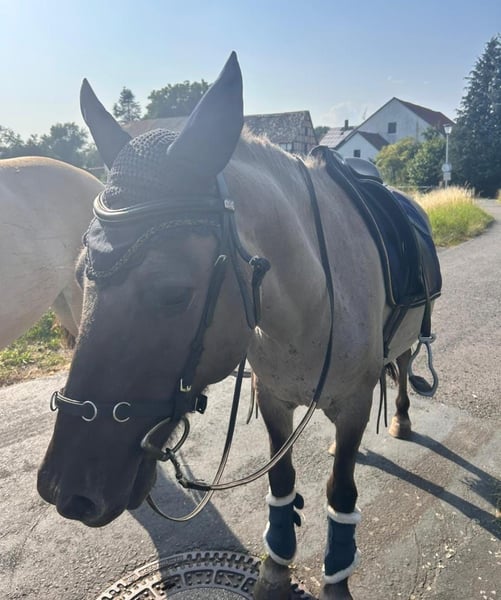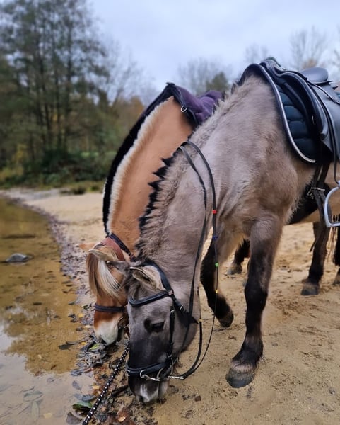 Hello, I am offering "Paian" for sale or lease on behalf of the owner. He is 9 years old and 1.32 meters tall, making him an ideal pony for either good riding schools or children with experienced adults. He is well-trained from the ground, excellent as a lead pony, and very gentle in handling and riding. Due to a lack of suitable lightweight riders, he hasn't been ridden extensively, but he calmly goes on rides with children in all gaits, even on open fields. When other ponies start to buck, he remains unaffected and responds well to the child's commands. He is neither overly spirited nor lazy, but rather a perfect middle ground. He has eczema, which has improved significantly, but he still needs at least nine months of eczema blanket wear to keep everything in order. He is very clever and learns quickly. When you know how to teach him things "on the same wavelength," he is a real joy because he constantly makes progress. However, we currently lack the time for consistent training, so he is looking for a new, caring owner. For more details, we can gladly discuss everything in person. :)