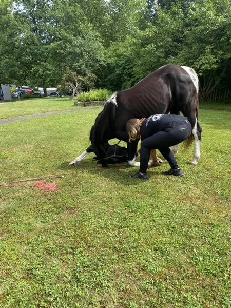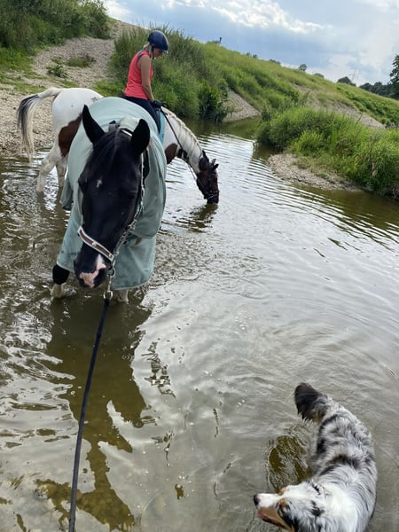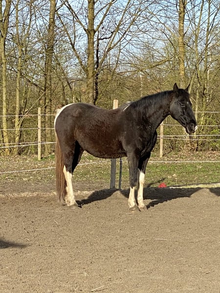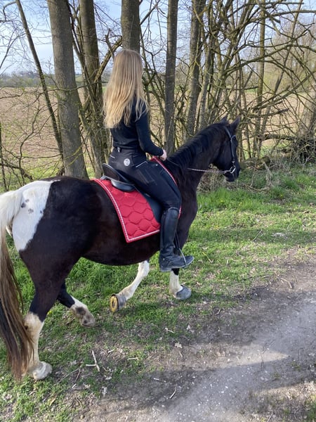 Sally ist eine super Freizeitstute. Mit ihr kann man im Gelände super ausreiten. Sie geht anstandslos über Brücken und ins Wasser. Sie schwimmt und plantscht sehr gerne. Sie geht auch unter Autobahnbrücken durch und neben der Autobahn geritten zu werden macht ihr auch keinen Stress. Am Platz ist sie nicht ganz so motiviert, aber wenn man weiß sich durchzusetzen, dann dreht sie auch hier ihre Runden. Zirzensik macht ihr tierisch Spaß sie steigt ( auch unterm Reiter) Spanischer schritt( auch unterm Reiter) Kompliment nur vom Boden aktuell. Wenn dies weiter gefestigt wird, kann dies bestimmt auch unterm Reiter abgerufen werden. Seitengänge an der Hand vorhanden auch seitlich auf dich zu. Einparken kenn sich und macht dies super anständig. Sie kann geführt auch von kleinen Kindern geritten werden. Dadurch das sie so viel kann evtl nicht für reitanfänger geeignet. Sie lebt aktuell in einem kleinen Offenstall, dass wünsche ich mir auch weiterhin für sie, da sie in der Box sehr gestresst ist. Verladen ist kein Problem. Dieses Jahr war ich das erste Mal mit ihr auswärts in einem Altenheim und ich konnte auch vor Publikum alles abrufen. Auch Klatschen von den Zuschauern machte Sally nicht nervös. Wenn sie Vertrauen gefasst hat, macht sie alles. Sie testet am Anfang sehr gerne aus wie weit sie gehen kann.