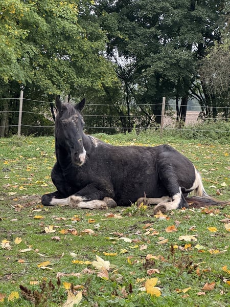 Sally is a fantastic leisure mare. She is perfect for trail riding and handles outdoor excursions with ease. She crosses bridges and water without hesitation, enjoys swimming and splashing around. She also passes under motorway bridges comfortably, and being ridden alongside highways does not stress her at all. In the arena, she is a bit less motivated, but with consistent leadership, she will happily go her rounds there as well. She has a real passion for classical dressage, performing piaffe (even under saddle) and Spanish walk (also under saddle) – currently only on the ground. With continued training, these movements could certainly be performed under saddle too. She also performs lateral work at the walk, including side-passes towards you. She is familiar with parking and does this very neatly. She can be led and ridden by small children, although due to her versatility, she may not be suitable for complete beginners. She currently lives in a small open stable, which I hope will remain her home, as she becomes very stressed in a box. Loading is no problem. This year, I took her out for the first time to a retirement home, and I was able to perform all exercises in front of an audience. Clapping from spectators did not make her nervous. Once she has built trust, she is willing to do anything. She tends to test her limits at first to see how far she can go.