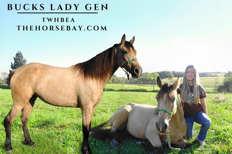 PUJA ABIERTA EN THEHORSEBAY,COM. VENTA TERMINA EL 10/23 @ 4PM CT. Más información está disponible en el sitio web, incluyendo una inspección veterinaria UTD, Coggins, vídeo, imágenes, y la información de contacto del propietario para hacer preguntas, solicitar información, o hacer arreglos para venir a visitar. Bucks Lady Gen es una yegua Tennessee Walking Horse de 5 años registrada con tres años de experiencia en equitación. Está bien domada y es conocida por su fuerte vínculo con las personas, lo que la convierte en una compañera encantadora tanto dentro como fuera de la silla. Es atlética y aprende rápido, sobresale en cualquier desafío y destaca entre los demás caballos. Su paso suave y su temperamento dispuesto hacen que sea un placer montarla, perfecta para cualquiera que busque un compañero de rutas versátil y fiable.
