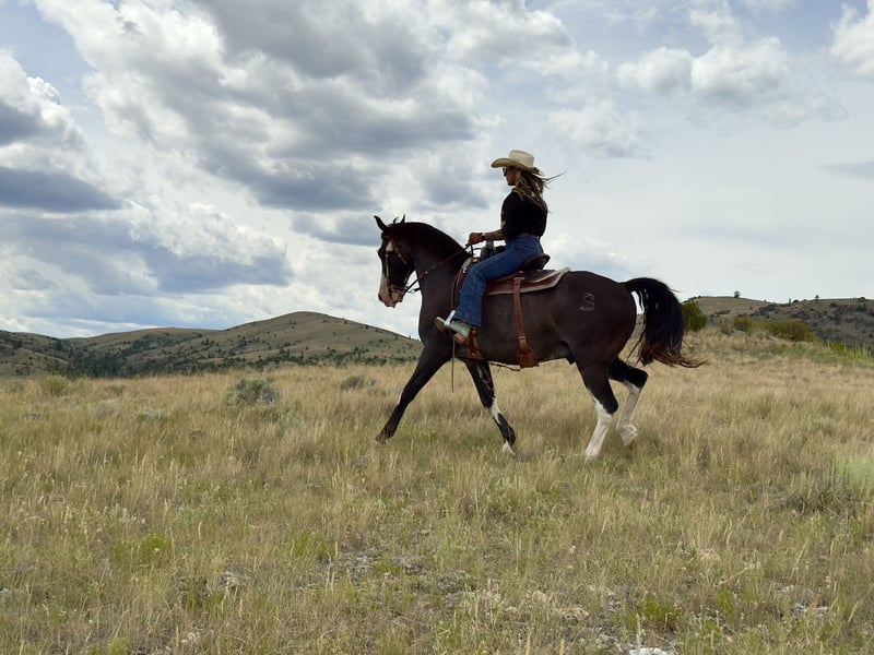 "Ivar is a 9 year old Smokey Valley Tennessee Walking Horse gelding. He stands 15 hands high and is a gorgeous black sabino roan with plenty of chrome, natural collection and a lovely conformation. Ivar is a brilliant performance trail horse - bred for speed, endurance and comfort. His 4-beat gait offers unrivaled smoothness and stamina, topping out over 20 mph.