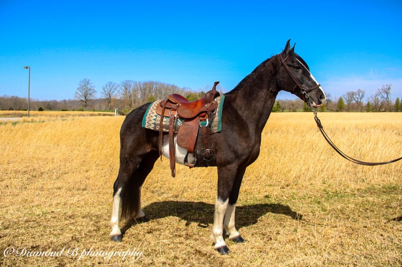ONLY AVAILABLE AT https://fieldtrialtotrail.com/listing/banjo This is banjo a 15.2 hh Tennssee walking horse gelding , banjo has been trail ridden over over , ride front , middle or back ! He stands for farrier , loads unloads, tacks up quite ! We have squirrel hunted off him he’s leads the dogs with no problem! Banjo has a OUT STANDING running walk , will step up and hit a little 4 beat or you can take ahold of him he will ride 16/17 MPH with lots of style ! Anyone who knows the basics of riding can ride this guy ! You can take him the the fun shows and WIN All the walking classes with him he has lots of stride and a big running walk head shaking gear ! He can absolutely cover some ground ! He crosses creeks , logs, water etc! Been on lots of over night camping trips !