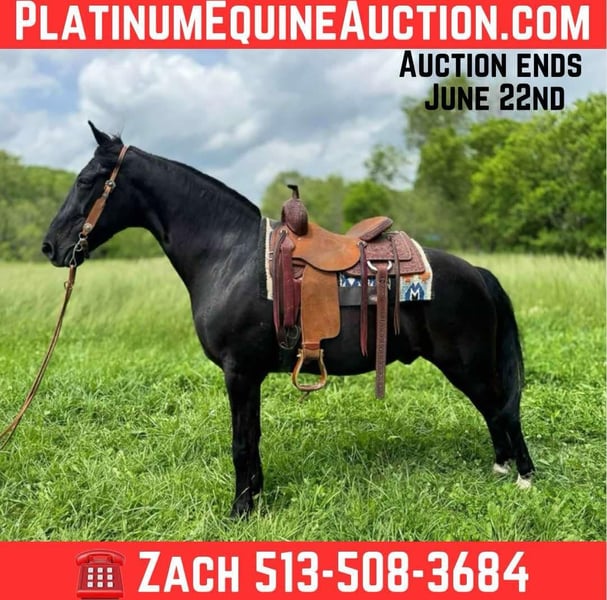 ONLINE AUCTION Place your bids at www.PlatinumEquineAuction.com Starting Bid $3500 Auction ends June 22nd, 2025 Need a new saddle? Check out White Rock Saddles on our website or Facebook! Shadow is a very handsome black Kentucky mountain gelding. He stands a stout 15.1 hands and is 11 years old. This is an incredibly well built gaited horse. He is sure footed, self confident and easy to ride. I absolutely love the way he travels and presents himself. He is a very naturally classy horse and is absolutely smooth as glass. He has logged a ton of trail miles both in groups of all sizes and out alone. This horse is not buddy or barn sour and always aims to please. Shadow is a people loving animal, never meets a stranger. He climbs steep hills, crosses down timber, and calmly walks through water. I have nothing but great things to say about this great gelding. He’s one of the good ones that you do not want to miss! Located in Moscow, OH. Contact Brandenburg Stables Zach 513-508-3684 with any questions. ONLINE AUCTION Place your bids at www.PlatinumEquineAuction.com Starting Bid $3500 Auction ends June 22nd, 2025 Need a new saddle? Check out White Rock Saddles on our website or Facebook!