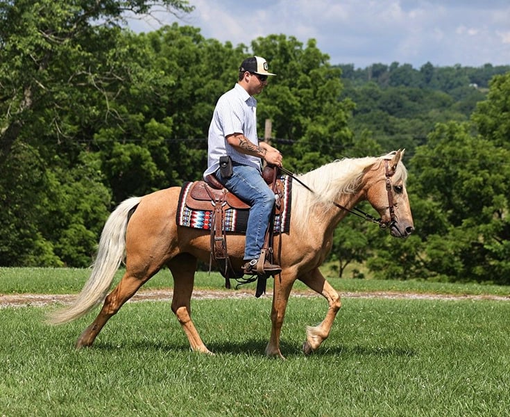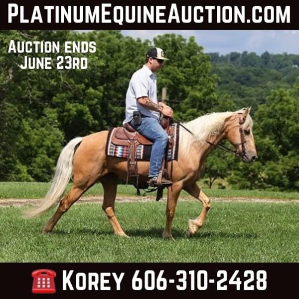 ONLINE AUCTION Place your bids at www.PlatinumEquineAuction.com Starting Bid $3500 Auction ends June 23rd, 2024 Need a new saddle? Check out White Rock Saddles on our website or Facebook! OH WOW… talk about one classy looking lady that checks every box on the score sheet!!! She has the looks, the gait, the mind and the experience!!! Her name is Karma and she is one of those good things that you have been waiting for! Karma stands around 14.2hh and she is 11 years old and she has done it all and seen it all! From the Smoky Mountains of TN to the Blue Ridge Mountains of North Carolina, Karma knows all about those rough rocky trails and knows how to handle herself. She will go up or down even the steepest slopes, across deep creeks, over downed trees, and over all types of rough terrain while still being sure footed. She has been rode in traffic, and is very traffic safe around cars, semi, log, and dump trucks. If you need a smooth ride that won’t hurt your back??? Then look no further! They come no smoother gaited than Karma! She has that true 4-beat gait that is comfortable for hours in the saddle and you back and your bottom will thank you! Karma is the ultimate trail horse, saddle bags, highline ties, of course she hauls and loads easily. She does great out in the pasture with our mixed herd. She has a great attitude about whatever she is asked to do. Feel free to call Korey Patrick 606-310-2428 with any questions. Located in Parkers Lake, KY. ONLINE AUCTION Place your bids at www.PlatinumEquineAuction.com Starting Bid $3500 Auction ends June 23rd, 2024 Need a new saddle? Check out White Rock Saddles on our website or Facebook!