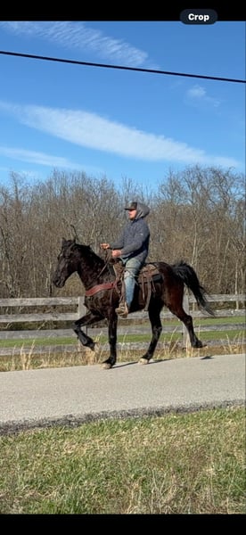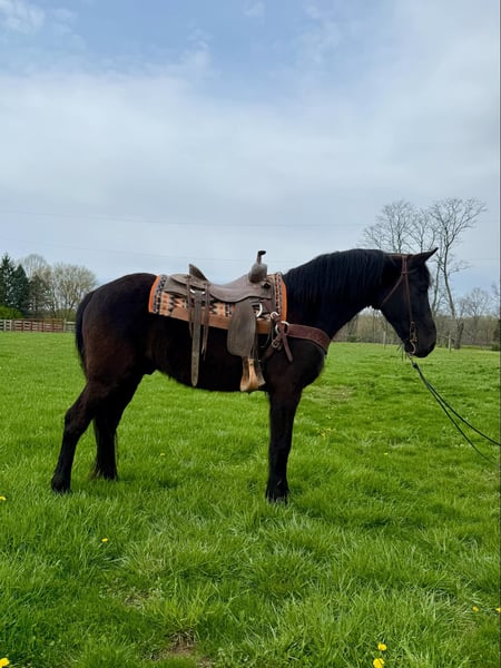 ONLINE AUCTION Place your bids at www.PlatinumEquineAuction.com Starting Bid $3500 Auction ends April 27th, 2025 Need a new saddle? Check out White Rock Saddles on our website or Facebook! Shadow is a handsome jet black grade Missouri Foxtrotter gelding that is 13 years old and stands approximately 15.1 hands tall. This is an extremely well natured gelding that is truly gentle and aims to please 100% of the time. Shadow will walk for miles on a loose rein, calm and content, he has a stylish smooth gait that is very comfortable and a very easy to sit cantor. Shadow is not a hot or pushy horse, he stays relaxed and responds to his riders cues. He goes where you point him on the trail and never bulks, refuses or second guesses his rider. Shadow is desensitized, trusting and people loving. He hauls perfectly, stands for bathing and grooming, he loads and unloads with ease and is truly just over all easy to be around. Located in Moscow, OH. Contact Brandenburg Stables Zach 513-508-3684 with any questions or to make a buy it now offer. ONLINE AUCTION Place your bids at www.PlatinumEquineAuction.com Starting Bid $3500 Auction ends April 27th, 2025 Need a new saddle? Check out White Rock Saddles on our website or Facebook!