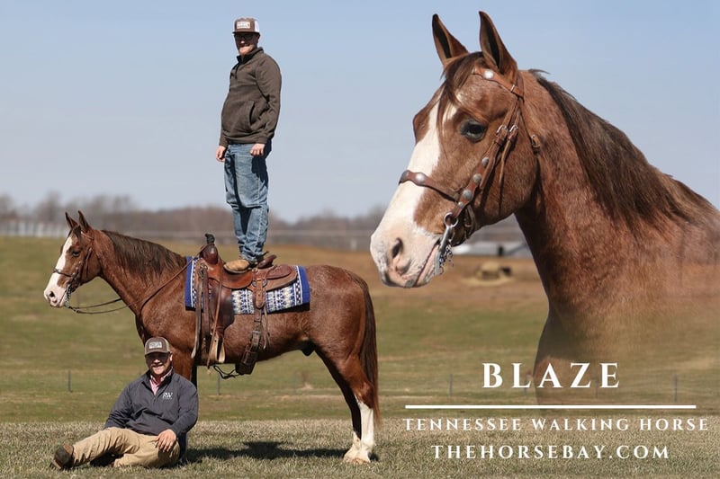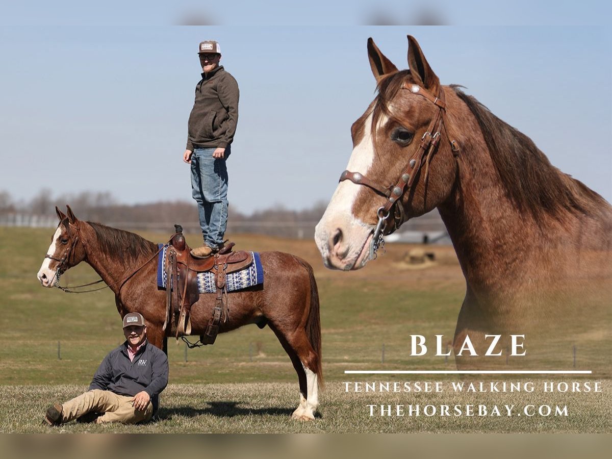 OPEN BIDDING ON THEHORSEBAY,COM. SALE ENDS ON 03/26 More information is available on the website, including an UTD vet inspection, Coggins, video, images, and the owner's contact information to ask questions, request information, or make arrangements to come to visit. Take a look at Blaze, who is an eye-catching Red Roan gelding with stockings and a big blaze face! He is a Tennessee Walking Horse standing around 14.3hh and is 15 years old. Blaze has all the experience anyone could ask for but is young enough to do it all again! Blaze is a super fun horse to ride as he glides! He has that true 4-beat gait that is smooth for any rider at all speeds up to 12mph. Blaze has been ridden in several states, from Mississippi to Indiana. Blaze has seen everything imaginable and handles everything in stride! He has been exposed to all kinds of wildlife, such as deer or turkey, or other animals like cows or dogs, and will go anywhere that he is asked to. He has ridden many miles in the mountains of Eastern Kentucky and encountered every obstacle possible on the trail. He will go up or down even the steepest slopes, across deep creeks, over downed trees, and all rough terrain while still being sure-footed. He has been ridden in traffic and is very traffic-safe around cars, semis, logs, and dump trucks. If you are looking to blaze a trail but want to do it safely and steadily… Blaze is the horse for you! Feel free to call with any questions.
