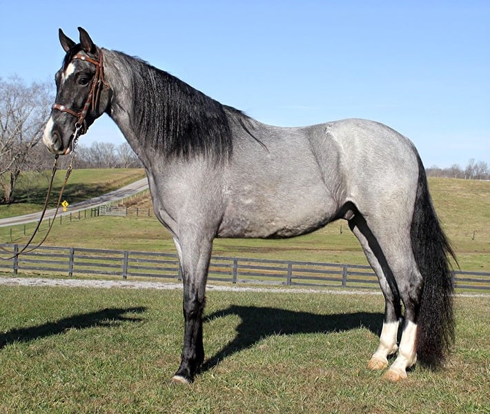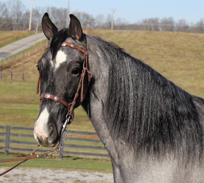 ONLINE AUCTION Place your bids at www.PlatinumEquineAuction.com Starting Bid $3500 Auction ends August 11th, 2024 Need a new saddle? Check out White Rock Saddles on our website or Facebook! I see Smoke but don’t worry “you’re not on fire Ricky Bobby”… SFF Pusher’s Blue Smoke (Blue) is standing around 15.1-15.2h, 2017 model registered TWH and is a True Blue Roan Gelding!!! He is a registered Tennessee Walking Horse and has a good pedigree. I bought Blue back in the spring and have trail rode him all summer, fall and winter. Blue has been trail ridden and camping in Tennessee, Ohio and throughout Kentucky. Blue is easy to catch, clip, bath, tack-up, load, and handle. Blue is a very well broke horse for his age, he has never tried to buck or bolt and he makes few mistakes. Blue has a very smooth and natural 4-beat gait all the way up to 12mph with a nice lope. He moves out easily and will also walk quietly on a loose rein. He has been ridden around farm equipment, ATV’s, over large noisy tarps and has also had guns shot off of his back. No matter where he goes or what he does, Blue is not spooky acting. On the trails he is always great! Blue has been exposed to all kinds of wildlife such as deer or turkey or other animals like cows or dogs and will go anywhere that he is asked too. He has been rode many miles in the mountains of Eastern Kentucky and Tennessee and encountered every obstacle possible on the trail. He will go up or down even the steepest slopes, across deep creeks, over downed trees, and over all types of rough terrain while still being sure footed. He has been rode in traffic and is safe around cars and trucks. He has a great attitude and an easy going personality. He is a horse that you can take home and finish him any way that you want him to be! You can Smoke all you want too here without any risks!!! I bought Blue 4 years ago and we have transitioned to quarter horses, call Scott Aurich 619-987-9797 for more info. Located in Bonita, CA. ONLINE AUCTION Place your bids at www.PlatinumEquineAuction.com Starting Bid $3500 Auction ends August 11th, 2024 Need a new saddle? Check out White Rock Saddles on our website or Facebook!
