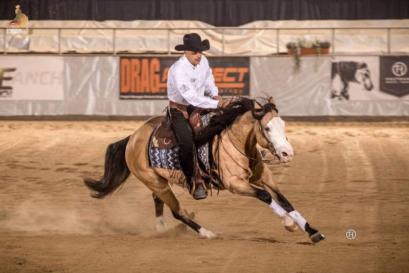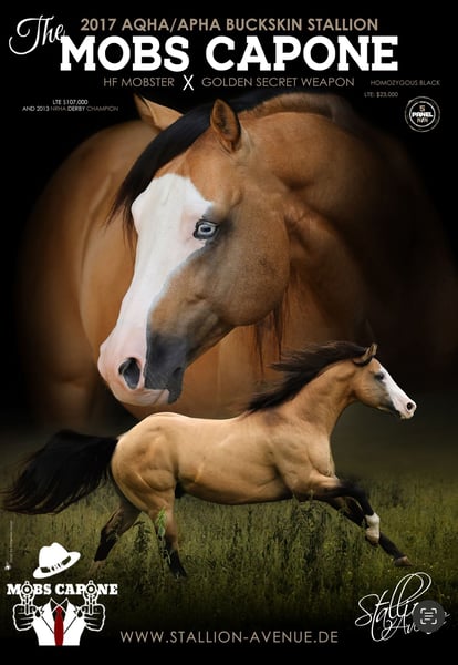 Bardzo wyjątkowy ogier: piękny. Imponujący. Czysta elegancja i charyzma. Mocne, idealne ciało w ekskluzywnym specjalnym kolorze. THE MOBS CAPONE jest super utalentowanym potomkiem gangstera HF. Już z powodzeniem pokazany i absolutnie schłodzony w pracy. Zawsze daje z siebie wszystko i nie mówi nie. Jego charakter jest absolutnie wyjątkowy i chce całkowicie zadowolić swojego człowieka. Ponadto Capone jest również ultra przytulanką i przekazuje ten wspaniały sposób myślenia bez przeszkód swojemu potomstwu! Badania genetyczne PSSM N/N GBED N/N HERDA N/N HYPP N/N EMH N/N IMM / MYHM N/My Genetyka koloru Krem CR/cr Fuchs E/E Zachlapany biały 1 N/N Splashed White 2 n/SW2 Zachlapany biały 3 N/N homozygotyczna czerń!!