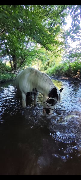 Zum Verkauf steht nicht nur eine Bildhübsche Tinker Stute - Nein : eine Lebensversicherung für die ganze Familie. Sie ist 10 Jahre alt und stolze 148 cm groß. Sie ist ein Traum von Pferd, für jeden der ein absolutes Verlasspferd sucht. Püppi ist gelassen, unschreckhaft, aufgeschlossen und sehr kuschelbedürftig. Die Bilder sprechen für sich und ich habe viele Videos mit Freiarbeit. Sie ist ein ausgebildetes Reitpferd, das für Anfänger und auch Fortgeschrittene Reiter geeignet ist. Egal ob Bodenarbeit, Longieren, Ausritte gemütlich oder auch mal flotter, Püppi ist für alles zu haben. Selbstverständlich ist sie regelmäßig geimpft, entwurmt. Sie trägt vorne Eisen kann aber auch je nach Bodenverhältnissen barhuf laufen. Sie ist kerngesund , keine Mauke keine Raspe. Jeglicher Arzt hat an uns nicht verdient.... Püppi ist rangmittel sie steht in einer gemischten Herde im Offenstall. Kennnt aber auch Stutenherde mit wenigen Pferden. Püppi möchte nicht in einer Box leben, sie genießt das Leben in der Herde und unter freiem Himmel, was wir uns für das neue Zuhause auch für sie wünschen. Ich habe sie seit sie 6 Monate alt ist. Wir haben viel erlebt, gekämpft, gelacht und geweint. Püppi ist kein Gewichtsträger. Ich kann mit ihr ins Gelände mit Sattel, mit Pad oder ohne Sattel.... Sie ist wahnsinnig bequem und weich in den Gangarten. Ich habe regelmäßig an Kursen teilgenommen. Highlight war aber letztes Jahr das "Savvy Center" in Brebersdorf bei Nina Gassner und Josh Baker. Da standen wir knapp 2 Monate um uns mal so richtig General zu überholen, lernten das Parelli Level 1 und machen das auch prima. Gute Ausbildung kostet aber leider auch Geld.... Sie kennt Hunde, Traktoren, Hänger reiten wir rein, einfach aus Spaß, Sanct Martin sind wir öfter geritten. Dorfgeräusche interessiert sie nicht. Ich kann Kinder Hunde Plane drauf legen alles cool. Ausritte mit meiner Tochter auch mal im Galopp null Thema. Wir wünschen uns einen liebevollen Menschen der es schätzt ein so tolles Pferd zu haben und gemeinsam Zeit verbringen möchte. Ich wünsche mir für sie, dass sie viel Bewegung hat, auch mal sich durchsetzen kann/muss weil sie eher träger ist. Auf dem Platz richtig arbeiten,macht ihr bedingt Spaß aber alles was schneller sein muss findet sie nervig. Warum ich das tolle Pferd verkaufe? Ich möchte reiterlich weiter kommen, möchte mehr auf Kurse und Trail gehen. Püppi ist dafür nicht das Pferd, man kann auch kein Geländewagen in ein Sportwagen zaubern. Es gibt noch vieles zu erzählen oder zu zeigen was sie kann. Sie kann mit Zubehör abgegeben werden, ein Probereiten ist möglich, allerdings bei nur ernsthaften Interesse und nach vorheriger genauerer Absprache.