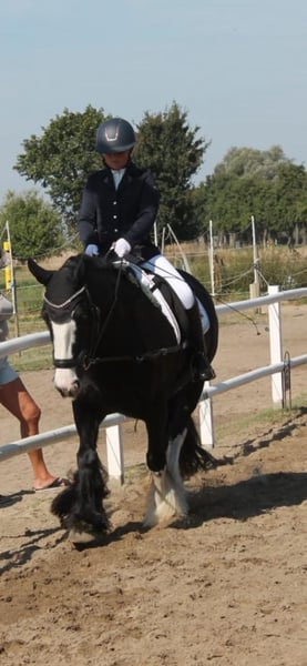 Our Tinker mare Mieze (14 years old) is looking for a new home. She is a super sweet little Tinker mare standing at 1.45m. Due to her build, she can also carry small, lighter adults. The pony is an absolute all-rounder, whether under saddle, in the field, in front of the cart, or at competitions, she performs excellently everywhere. She is currently being ridden by a 10-year-old girl who also goes out on her own into the countryside. She is fearless and does not rely on other horses, which also makes her a dependable horse in front of the cart. She has successfully competed in WBO competitions. Mieze is absolutely low in rank and avoids any stress directly. She loads easily, stands very still on the trailer, is gentle with the farrier and the veterinarian. Simply a super sweet, nice, honest pony without any bad habits. No kicking, biting, bucking, or anything else. For less experienced riders, she should also be ridden with corrections, as she is still a pony after all. This is not an urgent sale; she can easily stay with us longer and will only be placed in a truly suitable home. Regularly vaccinated (competition compliant) and dewormed. No mud fever or eczema, but she requires steamed hay. €4500 Please feel free to contact us with any further questions.
