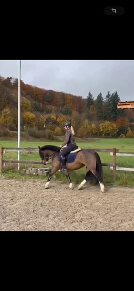 A very sweet mare is looking for her forever home! I am hoping to find someone who can offer her the best life with patience and calmness. She is very gentle in handling, knows no bad habits, and is easy to manage with both the farrier and the veterinarian. She is familiar with trailer loading, although she still needs some practice. She requires a trusting handler, as she is initially somewhat shy and sensitive. However, she blossoms with time. Her favorite activity is hacking out; she can even go on a canter! But she also enjoys long walks at a relaxed pace to unwind and enjoy the scenery. Arena work was a foreign concept to her at first, but we have gradually learned the basics, and she always wants to do her best, showing herself to be a clever little mare. I believe she could learn much more with the right person! She enjoys free jumping, lunging, and long-lining, listening well to voice commands. Of course, she can also sometimes get a bit spirited and give a little gas. Therefore, I am looking for an experienced horse person, as she is still a small, sensitive pony mare with her own head—never malicious. Clear rules and boundaries should be established, or she might try to take control herself. Regarding mud fever: She came to me with mud fever but is now in excellent condition. We have always consulted with the veterinarian. She is vaccinated, has had regular blood tests, and shows no signs of injuries. It’s difficult for me because we have achieved a lot together and learned from each other, but I am only about 1.70 meters tall, and my weight is no longer sustainable for her. Plus, she’s simply too nice to be sold off. If you’re interested, please don’t hesitate to get in touch!