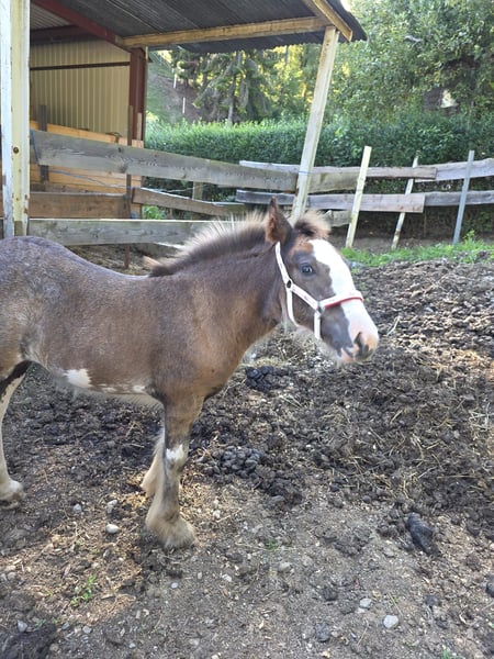 Our charming Tinker mare Lara, born on May 10, 2025, is a real heartbreaker. She is chestnut with lovely white markings on her legs and belly, complemented by fine white stichelhaar, giving her a very distinctive appearance. Lara's temperament is curious, spirited, and friendly – a true children's pony at heart! She loves human contact and is always the first to say "hello." With her friendly and attentive nature, she will undoubtedly be a wonderful partner for leisure riding, family, and training. Profile: Date of Birth: May 10, 2025 Breed: Tinker Gender: Mare Color: Chestnut with white markings, white stichelhaar Temperament: Curious, affectionate, playful Lara has everything you could wish for in a future leisure horse or a loyal companion.