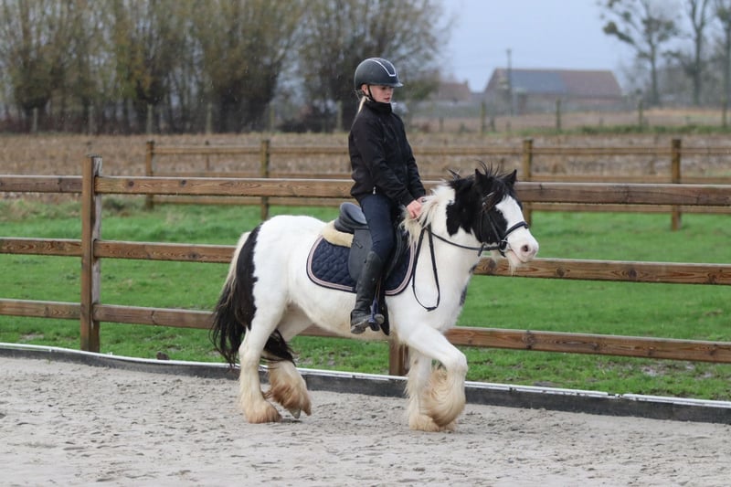 Evie 🌸 Pony femmina di 4 anni molto dolce – altezza 1,26 m Questa splendida giovane femmina non dimostra affatto di avere solo 4 anni. Si muove molto bene e con semplicità nei tre andamenti e salta con grande facilità. Andare a cavallo in esterno non le dà problemi: non è spaventata e si comporta in modo esemplare in strada. Inoltre, Evie è a prova di scivolata – vedi foto e video con la palla – e rimane sempre rilassata e affidabile. Nel rapporto con le persone è una pony incredibilmente dolce e paziente. Si ferma tranquillamente quando si la monta, si lava, si asciuga… Insomma: una vera pony per bambini e famiglie. Va d’accordo con altri pony ed è molto facile da trasportare. Per ulteriori informazioni? 📞 0032 475 68 22 43 I video sono disponibili sul nostro sito web – chiedi pure il link!