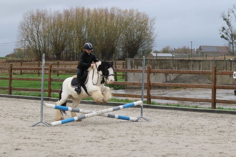 Evie 🌸 Super douce ponette jument de 4 ans – 1,26 m Cette magnifique jeune jument ne donne absolument pas l’impression d’avoir seulement 4 ans. Elle se déplace très proprement et facilement dans les trois allures et saute avec beaucoup d’aisance. Elle monte sans problème en extérieur : elle n’est pas peureuse et se comporte de manière exemplaire en balade. De plus, Evie est ultra fiable – voir les photos et vidéos avec le ballon – et reste toujours détendue et sûre d’elle. En interaction, c’est une ponette incroyablement douce et patiente. Elle reste parfaitement calme lors du pansage, du lavage, du séchage… En résumé : une véritable pony pour enfants et familles. Elle s’entend bien avec d’autres poneys et est très facile à transporter. Plus d’informations ? 📞 0032 475 68 22 43 Les vidéos sont disponibles sur notre site internet – n’hésitez pas à demander le lien !