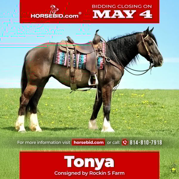 ▪️▫️◾️𝐭𝐡𝐞 𝑴𝒂𝒚 𝐒𝐞𝐥𝐞𝐜𝐭◾️▫️▪️ Happening now thru MONDAY | MAY 4th - Available EXCLUSIVELY on HorseBid's website! For more details and to register visit: www.Horsebid.com CONSIGNOR CONTACT: Rockin S Farm 814-810-7918 LOCATION: Rebersburg, PA BREED: Gypsy Vanner/ Quarter Horse Cross REGISTERED: No COLOR: Grulla HEIGHT: 14.2 AGE: 4 GENDER: Mare 💖💖 Tonya 💖💖 Here's a flashy looking 4yr old ¼ gypsy vanner/¾quarter horse mare, she's the kind that doesn't come along every day, she's the type that always aims to please and stays the same whether you ride her once a week or once every 3 months, she is well broke to ride and will go wherever you point her, she will ride out alone with no issues or also rides great in a group leading or following, she will ride through water and over logs and through rough country Tonya also rides great in the arena she knows her correct leads and has a Smooth walk-trot-canter and is super easy to ride, there's nothing complicated at all with her plus she's drop dead gorgeous with her grulla color will definitely get you noticed wherever you go Tonya also drives! She's great in traffic and farm equipment as nothing seems to bother her, so if you are looking for that all around family horse be sure to check her out! She loves attention and will stand patiently for the children to brush her she's great for the vet and farrier as well, she stands quietly to saddle and mount or dismount She loads and hauls great with no issues, she is up-to-date on farrier and dewormer as well as a current Coggins and health certificate Tonya sells 100% sound with no vices or bad habits and has no known health issues Please call Sam with any questions 814-810-7918 We can help arrange shipping anywhere in the US