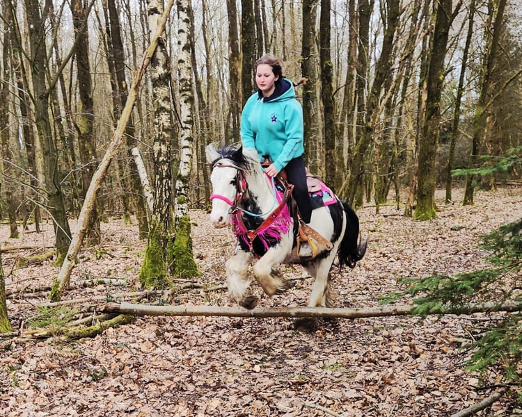 Tinker Stute – brav, gelassen & vielseitig einsetzbar, auch für Therapie geeignet LEA-SUSI Alter: 5 Jahre Stockmaß: ca. 1,35 m Preis: 4900,- AKU: vorhanden ✨ Beschreibung: Diese charmante Tinker Stute ist ein richtig nettes Pony, das nahezu jeden Spaß mitmacht. Sie überzeugt durch ihr freundliches, ausgeglichenes Wesen und zeigt sich im täglichen Umgang brav, unkompliziert und menschenbezogen. Unter dem Sattel ist sie nett geritten, kooperativ und angenehm zu reiten. Ob auf dem Platz oder im Gelände – sie zeigt sich gelassen und macht ihrem Reiter einfach Freude. Durch ihre ruhige, geduldige Art ist sie sehr zuverlässig und lässt sich auch in neuen Situationen nicht aus der Ruhe bringen. Perfekt für: Kinder, Jugendliche oder kleinere Erwachsene, die ein liebes, verlässliches und vielseitiges Pony suchen. Ideal für Freizeit, Ausritte, Bodenarbeit und alles, was gemeinsam Spaß macht. Aufgrund ihres ausgeglichenen Charakters und ihrer großen Gelassenheit ist sie auch interessant für den Einsatz im therapeutischen Reiten, da sie wirklich brav ist und vieles geduldig mitmacht. Unsere Pferde werden regelmäßig: – entwurmt – vom Schmied betreut – osteopathisch kontrolliert Transport auf Wunsch günstig organisierbar Anfragen bitte ausschließlich telefonisch: 0171 – 4001968 Erreichbar täglich von 8–20 Uhr ⚠️ Keine E-Mail oder WhatsApp ⚠️ Alle Angaben ohne Gewähr