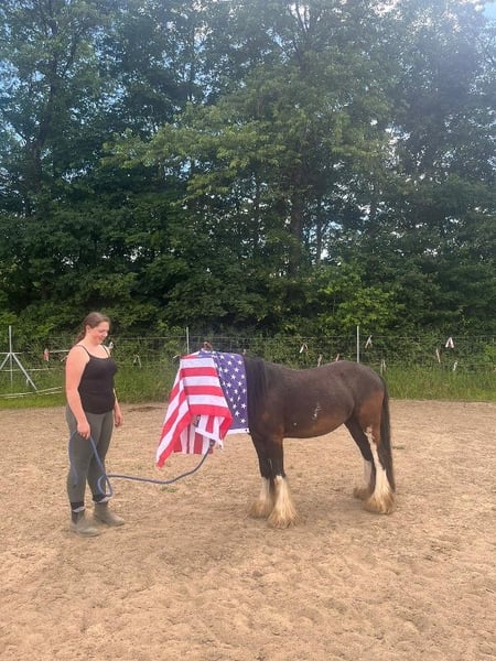 Cheyenne przyszła do mnie jako źrebak z matką. Właściwie chciałam ją wyszkolić dla siebie. Niestety, okazała się dla mnie za mała. Plan B był dla mojego wnuczka. Niestety, oboje nie mogą się ze sobą dogadać. Dla mojej hodowli nie potrzebuję kolejnego kucyka. Nadaje się do terapii jeździeckiej. Jej matka bierze udział w terapii u mnie. Z ziemi jest już gotowa. Teraz brakuje jej pewności pod jeźdźcem. Jest w treningu. Cheyenne jest bystra, wolna od egzemy, ma bardzo dobre kopyta. Jest spokojna w sobie, mimo że ma dopiero 5 lat. Chce pracować i uwielbia dzieci. Ma typową głowę kucyka, ale da się przekonać, jeśli chodzi o coś, na co akurat nie ma ochoty. Wady: szczepienia i odrobaczenia. Tutaj trzeba jeszcze trochę poćwiczyć. Poza tym jest nieustraszona i ciekawska, co bardzo ułatwia pracę. Przy poważnym zainteresowaniu chętnie prześlę więcej zdjęć i filmów. Można ją również oglądać w każdej chwili. Sprzedawana jest przez osobę prywatną. Uczyliśmy się również, jak spędzać noc w boksie. Jednak dorastała w stadzie w otwartym stajni.