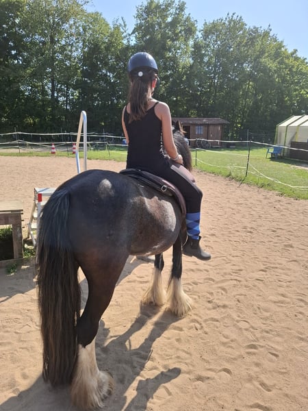 Cheyenne came to me as a foal with her mother. I actually wanted to train her for myself. Unfortunately, she turned out to be too small for me. Plan B was for my grandchild. Unfortunately, they do not get along. I do not need another pony for my business. She is suitable for riding therapy. Her mother is currently in therapy with me. She is finished on the ground. Now she just needs to gain confidence under the rider. She is in training. Cheyenne is clear-headed, free from eczema, and has very good hooves. She is calm within herself, even though she is only 5 years old. She wants to work and loves children. She has the typical pony head but can be convinced if there is something she does not feel like doing at the moment. Issues: vaccinations and deworming. This still needs some training. Otherwise, she is fearless and curious, which makes the work much easier. If you are seriously interested, I can provide more photos and videos. She can also be viewed at any time. She is being sold privately. She has also been trained to stand overnight in a box. However, she was raised in a herd in a paddock.