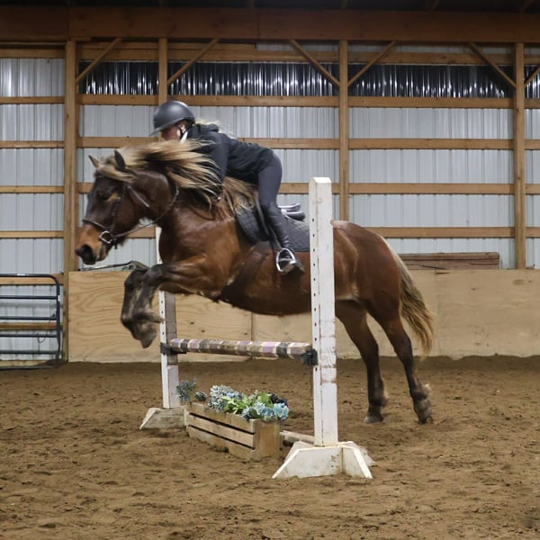 "AVAILABLE ON ONLINE HORSE AUCTION AT www DOT PlatinumEquineAuction DOT com BIDDING OPEN NOW thru SUNDAY | MARCH 29TH! *Final price will be determined on auction site* CONSIGNOR CONTACT INFO: Ellesse Schwartz 248-390-6831 LOCATION: Howell, MI Anyone looking for the perfect step up off a mini pony? Or a 1st horse who's not too big, but yet substantial underneath you? Meet Snickers she’s an adorable quarter horse Haflinger Cross mare. She is a stunning silver dapple in color with a sliver mane and tail! Talk about a beautiful girl! Snickers is a sturdy 14.2hh at 5 years old, although you wouldn't know that unless we told you. She is wise beyond her years. She has a charming disposition and loves people and attention. She’s got excellent manners and will stand all day for grooming, tacking, and just being loved on. Snickers is a laid back kinda gal she’s got a nice walk, and an adorable little trot you can sit to all day, and a canter that you sink right into! You won't want to get off her as she's so comfortable. She has all the fun buttons, shes got amazing transitions. She will steep into the canter on either lead from the halt, she moves off seat and leg as well. Snickers knows lateral movements such as haunches in, how to yield to leg pressure, and how to turn on the forehand or haunches. Snickers has been ridden English western and bareback, by beginners big and small and by some advanced riders as well. She loves a good trail ride and is not one to shy from anything. Deep woods, open fields, water and roads all no issue. Snickers jumps right around full courses effortlessly. She will even swap her leads when asked! Woods water traffic big groups all no problem! She’s a safe and sensible girl! She's been exposed to many obstacles such as pool noodles, bridges, tarps and has even carried the flag. Snickers has attended several schooling shows and was fantastic. She is also broke to drive and has been used both single and double. Snickers will excel in a home with lots of attention. She loves to jump and trail ride. She's the perfect steep up off a pony or a stellar 1st horse for someone wanting a mount who's not to big, but yet substantial underneath you. We think she would be a blast in the hunt field as well!! Give me a call or txt 248-390-6831 to meet her! Snickers lives in Howell, MI 48855