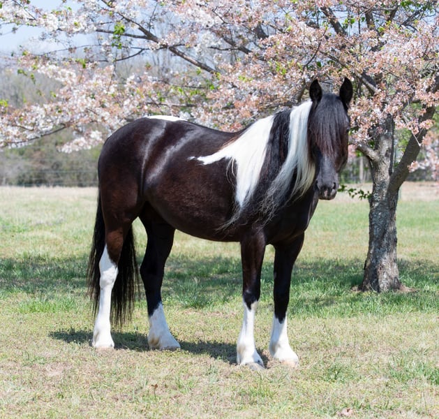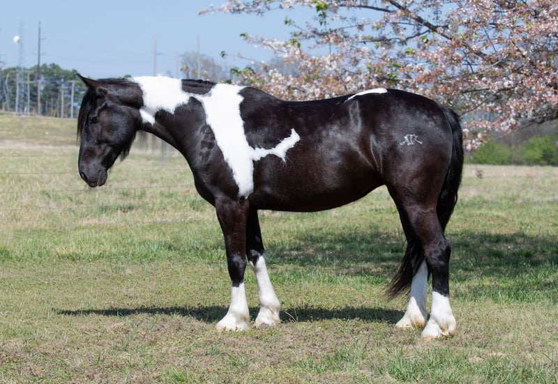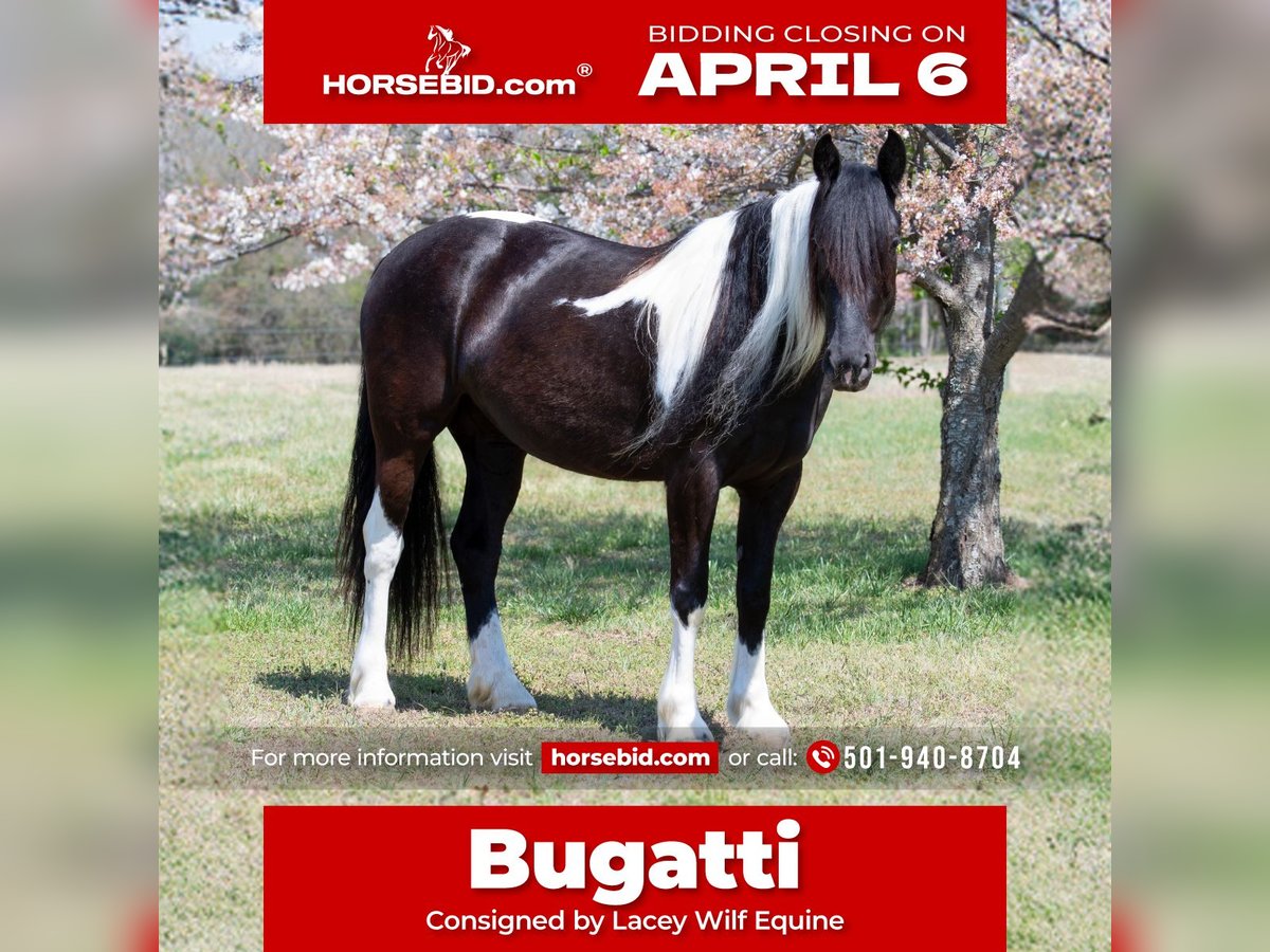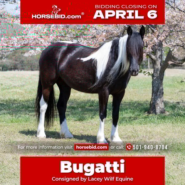 🌟𝑨𝒑𝒓𝒊𝒍 𝐀𝐋𝐋 𝐒𝐓𝐀𝐑 𝐋𝐈𝐍𝐄𝐔𝐏🌟 Happening now thru MONDAY | APRIL 6th - Available EXCLUSIVELY on HorseBid's website! For more details and to register visit: www.Horsebid.com CONSIGNOR CONTACT: Lacey Wilf Equine 501-940-8704 LOCATION: Quitman, AR BREED: Gypsy Vanner Cross REGISTERED: No COLOR: Black and White HEIGHT: 14.3 AGE: 5 GENDER: Mare Bugatti is the kind of mare that earns her keep the moment you swing a leg over. This 5 year old Gypsy Vanner x Quarter Horse cross stands 14.3 hands and is dressed in a striking black and white coat that’s hard to miss. Beneath the eye-catching look is a mare that has already built a résumé many older horses would be proud of. Bugatti has been used extensively for real ranch work and shows up every day with a willing, get-it-done attitude. She’s the kind that understands a job and steps right into it. Doctoring sick calves, working gates, checking fences, trotting wheat pastures, or sorting pairs, Bugatti handles the day-to-day work of ranch life with confidence and grit. She works a rope well and is stout to the horn, giving you something solid to count on when the rope comes tight. Despite her size, she’s strong where it matters and stays steady in the moments when it counts. When the work is done, Bugatti is just as happy to slow things down and ease down the trail. She travels out willingly, crosses water, logs, and rough country with an open and curious mind, and takes new terrain in stride. She’s the type that enjoys having a job but also knows how to relax and simply cover ground. In the arena, Bugatti shows just how versatile she really is. She transitions seamlessly between Western and English, carrying herself comfortably in both. She’s well broke in the bridle and responsive through her ribcage, moving willingly off seat and leg cues with a soft, connected feel that makes her enjoyable to ride. Bugatti also has a fun side that makes her stand out even more. Give the rein a little wiggle and she’ll side pass over to a fence or mounting block to help you climb aboard. Tap her foot and shake the bridle rein and she’ll bow before laying down, and once she’s down she’ll work herself up into a sitting position with the posture of a polite young lady. It’s the kind of personality and trainability that makes her not only useful, but entertaining to have around. Around the barn, Bugatti keeps life simple. She’s easy to catch, groom, tack, load, and shoe, and she’s content whether she’s stalled or turned out with other horses. With her combination of ranch experience, versatility, and a little extra personality, Bugatti is the kind of mare that’s both practical and memorable all in the same breath.