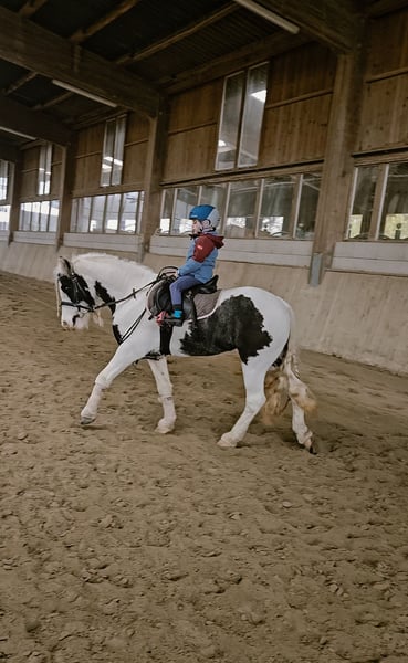 Prachtige, lieve en sportieve Irish Cob pony-merrie te koop, in goede handen voor een verantwoordelijke eigenaar. Flicka is voorzichtig en pas na volledige groei op 4,5-jarige leeftijd aangezad. Ze toont zich zeer leergierig, ijverig, mensgericht en absoluut kindvriendelijk. Ondanks haar kleine formaat kan ze probleemloos ook kleine volwassenen dragen. Ze past zich heel fijn aan haar ruiter aan: - Ze is voorzichtig en betrouwbaar bij kinderen, - goed te controleren vanaf de grond met stemcommando’s, - bij meer ervaren ruiters is ze gemotiveerd, werkwillig en ijverig. Flicka gaat zelfstandig het terrein in, blijft daarbij altijd helder in haar hoofd. Ze maakt ook graag kleine sprongen. Flicka staat onderaan in de hiërarchie in de kudde en is goed te socialiseren. Ik kan haar goed voorstellen als pony voor therapeutisch rijden. - kleine oefeningen zoals ‘balwerpen vanaf de pony’ zijn geen probleem voor haar. - Ook onverwachte bewegingen van de ruiter laat ze rustig toe. - Luidruchtige geluiden vormen geen probleem. - Indien gewenst, kan ze ook wennen aan een rolstoel en andere hulpmiddelen. - Ze kent al kinderwagens, spelende kinderen, tractoren, vrachtwagens, enz., en vindt dat geen probleem. Kleinere voltige- en gymnastiekoefeningen met kinderen zijn al gestart en vormen ook geen probleem. Vanwege haar tinkertypische huidproblemen, die momenteel goed verzorgd en stabiel onder controle zijn – en die wij niet willen verbergen –, wordt Flicka onder de marktwaarde verkocht. ! Voor verenigingen of instellingen die Flicka willen inzetten voor therapeutisch rijden of paardencoaching, is een overdracht tegen een symbolisch koopprijs mogelijk, mits de locatie en het concept overtuigen. Papieren met registratie bij de Irish Cob Society Nederland aanwezig. Wij zoeken een verantwoordelijke plek voor deze prachtige merrie. Plaats gaat voor prijs.