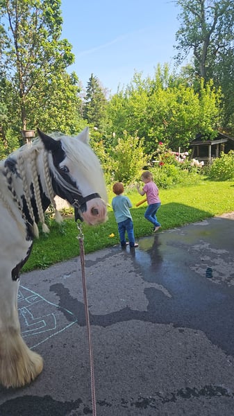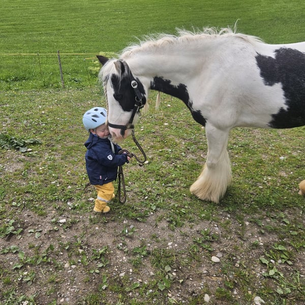 Bildhübsche, liebe und sportliche Irish Cob Ponystute im Auftrag in verantwortungsvolle Hände zu verkaufen. Flicka wurde behutsam und erst nach abgeschlossenem Wachstum im Alter von 4,5 Jahren angeritten. Sie zeigt sich sehr lernwillig, fleißig, menschenbezogen und absolut kinderlieb. Trotz ihrer geringen Größe deckt sie auch kleine Erwachsene problemlos ab. Sie passt sich ihrem Reiter sehr fein an: - bei Kindern ist sie vorsichtig und zuverlässig, - dabei vom Boden aus gut über die Stimme kontrollierbar, - bei fortgeschritteneren Reitern motiviert, arbeitsfreudig und fleißig. Flicka geht alleine ins Gelände, bleibt dabei stets klar im Kopf. Kleine Sprünge macht sie ebenfalls lieb. Flicka ist in der Herde rangniedrig und verträglich. Ich kann sie mir sehr gut als Pony für das therapeutische Reiten vorstellen. - kleine Übungen wie z. B. 'Ballwerfen vom Pony aus' sind für sie kein Problem. - Auch von unvorhersehbaren Bewegungen des Reiters lässt sie sich nicht aus der Ruhe bringen. - laute Geräusche sind ebenfalls kein Problem. - auf Wunsch könnte das gewöhnen an Rollstuhl und andere Hilfsmittel noch erfolgen. - Kinderwagen, spielende Kinder, Traktoren, LKW, usw kennt sie bereits und sind kein Problem. Kleinere Voltigierübungen mit Kindern wurden auch bereits begonnen und sind ebenfallskein Problem. Flicka wird aufgrund ihrer tinkertypischen Hautprobleme (Raspe), die gut gepflegt und stabil abgeheilt im Griff sind und die wir bewusst nicht verheimlichen möchten, weit unter Wert verkauft. ! Für Vereine oder Einrichtungen, die Flicka im therapeutischen Reiten bzw der Reitpädagogik einsetzen möchten, ist auch eine Abgabe zu einem symbolischen Kaufpreis vorstellbar, sofern der Platz und das Konzept überzeugen. Papiere mit Eintragung bei der Irish Cob Society Nederland vorhanden. Wir suchen einen verantwortungsvollen Platz für diese ganz wunderbare Stute. Platz vor Preis