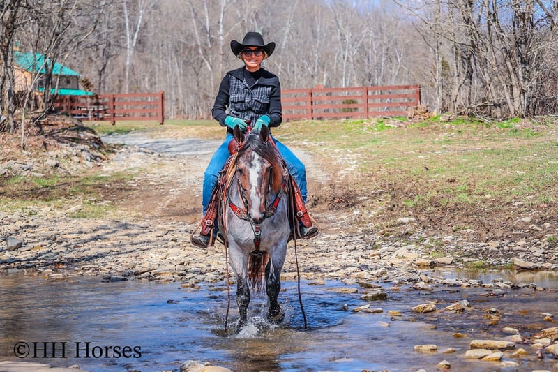 ONLINE AUCTION Place your bids at www.PlatinumEquineAuction.com Starting Bid $3500 Auction ends March 23rd, 2025 Need a new saddle? Check out White Rock Saddles on our website or Facebook! This is “GYPSY ROSE”, a very attractive, rare colored, well broke BAY ROAN GYPSY VANNER QUARTER HORSE crossbred mare that rides and drives. This mare is 5 years old and stands 14.1 hands tall. She is in foal to a Gypsy Vanner stallion for a June 2025 baby. She has had professional training and rides around like one should. She lopes nice collected circles, catches her leads, stops on whoa, backs up for any distance, and has a nice turnaround. This mare has been driven on the main roads and is traffic safe. She moves out with ease and is a very comfy ride that is attentive to her riders cues. She is responsive and fun with lots of feel. She will cross water quietly under harness or tack. This mare has been through the cross country driving courses. She will trail ride anywhere you want to go bravely. She has been used out in the pastures to gather cattle and driven to church on Sundays. She is versatile, well trained, smart, cool colored, and going to have a Gypsy foal soon. She is the right size, has the right temperament, and is a unique find with her color. She stands to harness, hitch, tack, mount, and groom. Don’t miss out on a fun 2 for 1 opportunity. Located in Flemingsburg, KY. For more info or to make a Buy It Now Offer contact HH Horses Erin 304-238-4155. ONLINE AUCTION Place your bids at www.PlatinumEquineAuction.com Starting Bid $3500 Auction ends March 23rd, 2025 Need a new saddle? Check out White Rock Saddles on our website or Facebook!