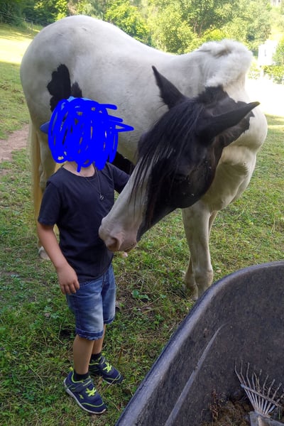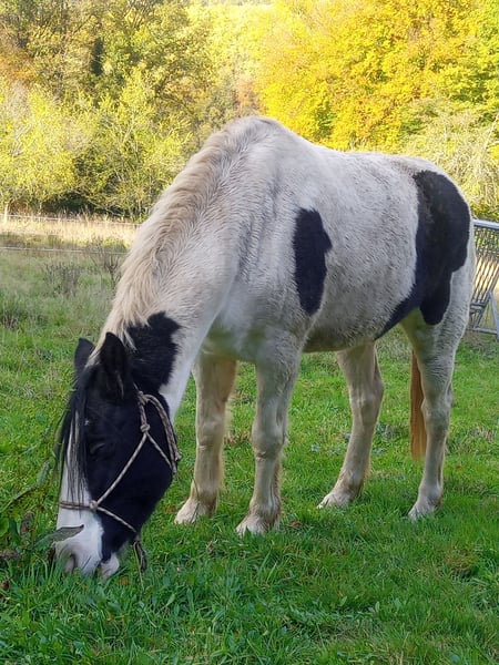 Parfois, il faut reconnaître que ce n’est simplement pas la bonne jument, c’est pourquoi elle est mise en vente. Elle a 5,5 ans et mesure 1,46 m. Elle connaît la promenade en liberté, ce qu’elle fait très bien, sauf lorsqu’elle rencontre ses adversaires, les vaches, ce qui la rend un peu hésitante, mais elle reste toujours contrôlable. Elle connaît le travail à pied et y répond très bien, réagit favorablement à la communication corporelle et à la voix. Elle a besoin d’un cavalier sûr de lui et confiant, car elle ne tolère pas une main dure. Elle connaît la selle et peut l’accompagner contre un supplément. Ce n’est pas une jument pour le poids lourd.