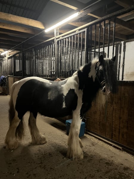 Suitability - Leisure riding - Dressage (young but talented) - Working Equitation / Trail riding - Groundwork - Lunging - Carriage driving - Trail riding (age-appropriate) - Not suitable for beginners – still in training --- Character - Gentle and friendly - Eager to learn with very expressive gaits - Curious - People-oriented - Motivated - Sensitive but fearless - Clear-minded, but still needs guidance and structure --- Training Level - Young horse in training - Saddled: free walk and trot under rider - Currently being further gymnasticed - Very good basic movements with lots of expression - Sideways movements already possible in groundwork - Confident lunging - Knows basic young horse handling, lunging with rider and free in walk so far… continues to be trained - Great talent for dressage and Working Equitation - Preparation for carriage driving easily imaginable --- Stabling - Suitable for open stable or paddock box - Socially compatible - Robust --- Health - Young and healthy - No known limitations - Normal age-appropriate development --- Minnie is a nearly 7-year-old Gypsy Vanner mare with her original Gypsy Vanner conformation (currently approximately 14.1 hh) and impressive movement. She embodies the typical, friendly, and clear character of this breed. She has been gently backed; as she has always grown steadily, she had plenty of time to develop at her own pace and now moves confidently in walk and trot under the rider. We are continuing her training, and she shows herself to be very eager to learn, friendly, and motivated. Minnie is responsive and works delicately, but she needs consistent, loving guidance – just like any young horse at this age. Her gaits are remarkably expressive, especially for a Gypsy Vanner mare. With proper training, Minnie can excel in dressage and Working Equitation. She already impresses in groundwork: she performs lateral movements surprisingly well, and classical riding arts bring her great joy. She also has excellent potential for carriage driving – clear-minded, attentive, yet calm enough to become a reliable driving partner in the future. Minnie is a horse that develops quickly, enjoys tasks, and is suitable for people who want to gently and carefully shape a talented young horse. She is sweet, socially compatible, and still in a positive raw state, having never had any bad experiences. An ideal horse for someone who enjoys training a young, motivated horse with patience and care – whether for dressage, Working Equitation, leisure riding, or later carriage driving. Minnie’s training can of course be continued with us. We are happy to support buyers further, assist with her dressage and Working Equitation development, and gently guide her on her path into the riding horse world. Those interested can also initially get to know her as a riding companion and later take over her training – this model has proven successful with many of our young horses and ensures a calm, secure transition. A stay at our stable is also possible and can be discussed individually. Minnie is familiar with our structure, feels comfortable in an open stable, and benefits from consistent work on site. She is currently developing week by week and remains especially balanced in a familiar environment. Serious inquiries are welcome to contact us for more information – she deserves only the best hands, and the reason for her sale is simply that we have too little time to give her the attention she needs – she is eager to learn. Please contact us at 0175 8946822 or 0160 99737763.