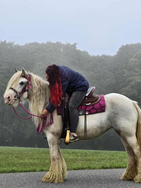 Tinker mare "Dosy" – lovable leisure partner with a long dream mane Age: 7 years Height: approx. 1.42 m Price: 5600.- Vet check: available ✨ About Dosy: Our beautiful Dosy enchants everyone with her gentle nature and her stunning, long mane. She is well-behaved in handling, uncomplicated to ride, and always shows herself to be friendly and balanced. Due to her sweet disposition, she is a loyal partner for lovely rides and relaxed hours in the countryside. Perfect for: Riders looking for a reliable mare with charm, charisma, and a real eye-catching factor. Our horses: – regularly dewormed – cared for by the farrier & osteopath Farm shop: Western saddles, bridles, accessories Transport & accessories organized cheaply upon request Our service: ✅ 3 months exchange right ✅ Test ride: €35, each additional horse €25 (deducted if purchased on the same day) ✅ €100 immediate discount for pickup/transport on the same day ✅ Personal & honest advice Inquiries please only by phone: 0171 – 4001968 Available daily from 8 AM to 8 PM ⚠️ No email or WhatsApp ⚠️ All information without guarantee