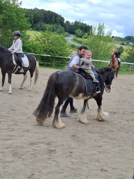 Herzens liebes Pony Sie ist kaum aus der Ruhe zu bringen, egal ob Wind Sturm, Gewitter etc sie bleibt immer brav und passt Mega lieb auf die Kinder auf die auf ihr sitzen. Sie wäre auch das optimale Therapiepony Kennt Laufstall und Boxenhaltung