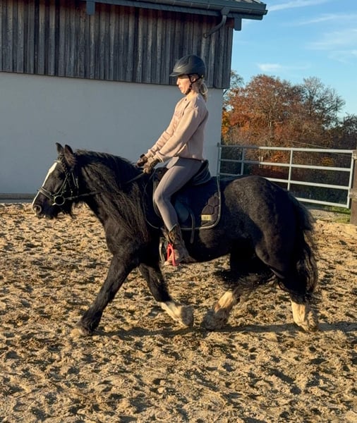 For sale is a strong 7-year-old Tinker mare standing approximately 137 cm tall, with excellent conformation and beautiful movement. She is a dream to handle, very well-behaved, and easy to manage. She also knows and likes children. She has been ridden in her leisure time and remains calm and steady. She moves comfortably in all gaits both in the arena and in the field. She is not easily spooked and is not a racehorse. She would likely be perfect for a riding school or a family. She is also absolutely manageable when it comes to farrier work and loading. She can be kept in a robust manner and is compatible with other horses in the herd. Her mane has been trimmed, as she had an excessive amount of mane. No signs of mud fever! Her hooves have already been recently trimmed. No illnesses or allergies are known. An AKU (pre-purchase examination) can be performed upon request. We charge €35 for a trial ride, pre-ride, or other testing of the horse. This amount will be credited upon purchase. Please call or send a message to 0157 36803742. All information provided is without guarantee. Price may be subject to change. Transport possible. Online purchase available.
