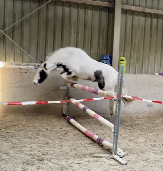 Zum Verkauf steht eine 2017 geborene, ca. 135 cm große Tinker-Scheckstute mit sehr gutem Charakter und absolut unkompliziertem Wesen. Sie ist brav, ehrlich und menschenbezogen und macht im täglichen Umgang alles geduldig mit. Auch von Kindern gut händelbar. Unter dem Sattel zeigt sie sich zuverlässig und gelassen in allen Grundgangarten. Besonders viel Freude bereitet sie beim Springen (E-Niveau), hier zeigt sie Vermögen und Spaß, ist dabei aber stets kontrollierbar. Sie ist geländesicher, kennt Bodenarbeit, Longenarbeit und ist auch gebisslos reitbar. ✔️ verlade- & schmiedefromm ✔️ barhuf, ekzemfrei ✔️ gesund, fit und korrekt ✔️ kennt Kinder ✔️ Equidenpass vorhanden Ideal geeignet für: Familie, Kinder, Jugendliche, Freizeitreiter oder als verlässliches Allroundpony. 📍 Standort: Würzburg 💶 Preis: 8.900 € – gut verhandelbar bei zügiger Abwicklung Bitte geben Sie bei Ihrer Anfrage eine Telefonnummer an.