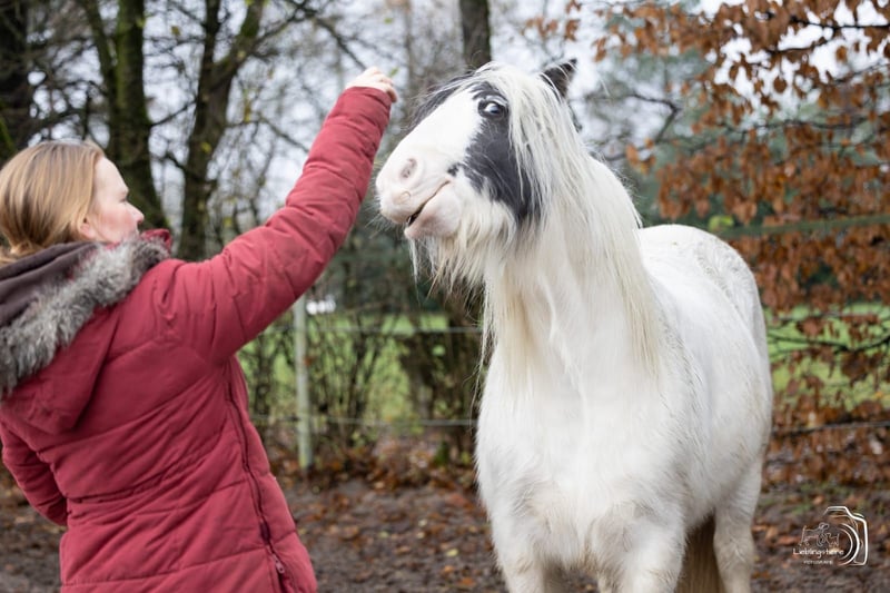 Das ist meine Nellie, mein Seelenpony. Wir sind durch sehr viele dunkle Zeiten gegangen aber auch durch sehr viel Sonnenschein. Nellie ist unfassbar kinderlieb, geländesicher, herdenverträglich, verschmust und liebt es stundenlang geputzt zu werden. Folgende Diagnosen begleiten sie durch ihr Leben: EMS - haben wir gut in den Griff bekommen nach einem Klinikaufenthalt. Rehe - Einen Schub 2022 mit Hufrotation. Seit dem keinen Schub mehr gehabt, trotz Stundenweise Wiese. Meist durfte sie so 2-4h auf die Wiese ohne Probleme. Die Hufroration ist komplett verheilt. Nellie kann stundenlang im Gelände geritten werden. Wenn da nicht das Asthma wäre. Equines Asthma- seit 2024. Wir haben wirklich so gut es geht alles verändert und umgestellt. Aktuell inhalieren wir 3x tgl ohne großen Erfolg. Deswegen wünschen wir unserer Nellie einen Platz wo sie Meeresluft schnuppern kann. Nellie ist komplett frei von Medikamenten, ausser momentan die Inhalation.
