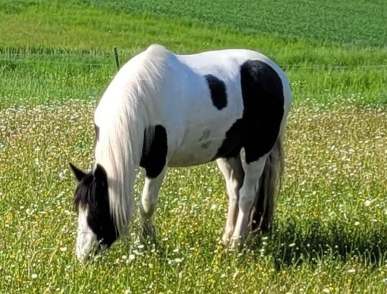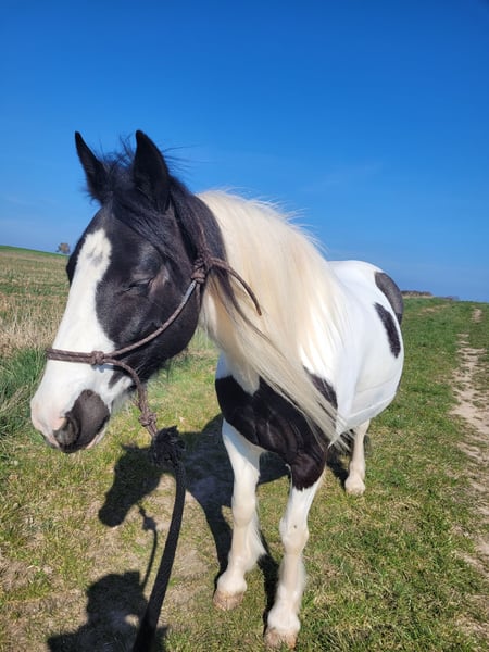 Zum Verkauf steht eine 9-jährige Tinkerstute mit einem Stockmaß von ca. 1,42 m. Die Stute ist ein absolut unkompliziertes Pferd: - schmiede- und verladefromm - geländesicher (alleine und in der Gruppe) - brav im täglichen Umgang - menschenbezogen und nervenstark Sie eignet sich ideal als Freizeitpartner, für gemütliche Ausritte, Bodenarbeit oder als zuverlässiges Familienpferd. Auch für Wiedereinsteiger oder Jugendliche gut vorstellbar. Im Straßenverkehr gelassen, kennt Hunde, Traktoren und alles, was man draußen so trifft. Beim Reiten angenehm und ehrlich, kein Durchgänger oder Buckler. Auch gesundheitlich steht sie top da. Kein Ekzem, keine Mauke oder Rehe. Nur in verantwortungsvolle Hände abzugeben. Weitere Infos, Fotos und Videos gerne auf Anfrage.