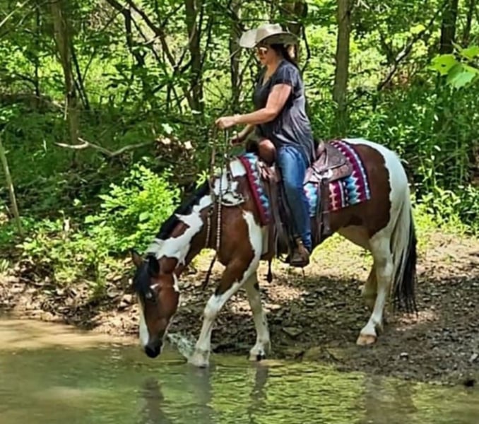 ONLINE AUCTION Place your bids at www.PlatinumEquineAuction.com Starting Bid $3500 Auction ends May 4th, 2025 Need a new saddle? Check out White Rock Saddles on our website or Facebook! I’m so excited to present to you Karoline 2017 Gypsy Vanner Cross. She stands 14.2 hands and weighs 1150lbs. She has it all, the gypsy vanner look, but the athletic ability to go in any direction you choose to take her in. Not only is she stunning to look at and a pleasure to be around, she’s extremely broke. Whether you’re wanting to spend the day riding down the trails, doing lessons, pushing cattle, jumping, or just pampering your best friend Karoline is your lady! Karoline has a willing attitude that makes her so special. She has great ground manners that make her incredibly easy to be around. Karoline has had only 2 owners her entire life. I’ve had the privilege of being around her for over two year. We have had her in training for the past year. She is only being offered for sale because a dear friend(owner) has decided she will no longer be riding. We ABSOLUTELY love Karoline. Karoline will ride away from the barn by himself or in big groups. She is always willing to go anywhere you point him and enjoys the trail obstacles. Karoline is broke better then most gypsy, she is not heavy or not dull. She will ride around with or without a bridle, side passes, moves her hips, is soft in the mouth, backs, and is user friendly for any level rider young or old. Karoline is traffic safe and tarps, bull whips, dogs, kids don’t faze her. She will stand all day for grooming and enjoys being pampered. She will also side pass to mounting block, picnic table, log or trailer fender to make mounting easy. Karoline is currently barefoot and has never needed a set of shoes. She stands great for the farrier, saddling, bathing, and clipping. She is easy to bridle as well. She is easy to catch in the feild and prefers to live outside, but also has great stall manners. She sells 100% sound no vices. She is UTD on shots and vaccinations. PPE are welcome. Make an appointment today to try Karoline. Check out her MUST SEE VIDEO Owner Cinthia Bowling, Contact (Agent) Jessica Bunch 434-981-3863 Located in Robards, KY. ONLINE AUCTION Place your bids at www.PlatinumEquineAuction.com Starting Bid $3500 Auction ends May 4th, 2025 Need a new saddle? Check out White Rock Saddles on our website or Facebook!