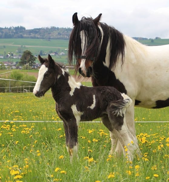 Zum Verkauf steht dieses aussergewöhnliche Tinker Hengst Fohlen, Saturo Jiro. Er besticht nicht nur durch seinen Charakter sondern vor allem durch seine tolle Erscheinung. Das absolute Highlight sind seine Augen, die ihm ein majestätisches Aussehen verleiht und ihn zum absoluten Hingucker machen. Sein gepflegter Behang unterstreicht sein harmonisches Gebäude und verleiht ihm eine ganz besondere Ausstrahlung. Geboren am 15.4.2025 End Stm. ca. 148 bis 150cm Farbe: Smoky Black PSSM: n/n Pass mit Eingetragener Abstammung: Vater: Pearl Ambition (letzten 2 Bilder) Mutter: Zendaya