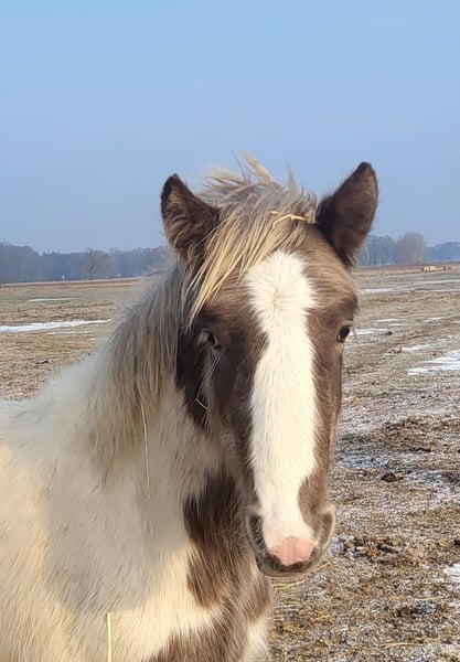 Top Irish Cob Hengst jährling sucht seinen Menschen. Charlottenhofs Nevihta ist ein sehr typvolles, im kräftigen alten Schlag stehender Hengst. Er wird schön groß- um die 150 cm. Seine tolle sehr seltene Sonderfarbe Black Silverdapple mit Lp (Tiegerschecke) ist eine echte Augenweide. Geb 3/25 EM ca 150 cm Er hat eine 1. Fohlenprämie erhalten