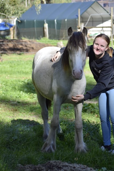Ogier kasztanowaty, klacz z gniadą tigercheck, szuka nowego domu. Toffee, jego matka, jest klaczą typu Few Spot, a ojciec to licencjonowany ogier buckskin-pearl. Posiada dokumenty ICS NL z pochodzeniem. Urodzony 18.05.2024, przewidywana końcowa wysokość to około 138-145 cm. Jest całkowicie agouti, co oznacza, że może mieć tylko potomstwo w kolorach brązowym i ognistym, nigdy rudy. Dzięki genowi kremowemu i LP mogą wystąpić palomino oraz buckskin tigercheck. Genetyka koloru: AA, Ee, LP/n, CR/n. U niego wykluczono obecność mutacji PSSM, FIS, HYPP, GBED, MH, HERDA – wszystkie testy są negatywne. Ze względu na sprzedaż prywatną brak gwarancji i zwrotów. Wyłączam wszelką odpowiedzialność z tytułu wad fizycznych. Dochód ze sprzedaży zostanie przeznaczony na pokrycie kosztów karmienia i opieki nad zwierzętami.