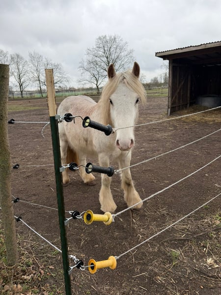 Stunning and extraordinary Tinker stallion!! He is 2 years old. A very well-behaved, gentle, and friendly young stallion with a rare and unique color that is difficult to describe: the color is called Fuchs-Sabino (appearing somewhat cream-colored with dark eyes!!!). He has grown up on pasture and has not experienced any negative encounters. He is familiar with having his hooves picked out and being led, but not much more. He enjoys a bit of play and grooming. He does not kick or bite. His expected height at maturity will be around 145 cm. Anyone interested in training such a wonderful stallion will find an unspoiled horse with unlimited potential. Please only serious inquiries. No questions about the final price, etc. Further details are gladly discussed over the phone.