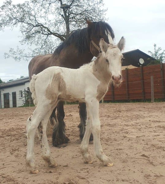 We are looking for the perfect home for our Tinker stallion Fridolin (born May 2024). This is not a forced sale, and he will only be sold to the best of hands. Fridolin is very people-oriented and extremely easy to handle. He is already familiar with everything a yearling should know: trailer loading, hoof handling, farrier visits, grooming, and walking out—no problem at all. He comes running from the paddock when called and can be separated from the herd effortlessly. He is a curious, sweet little guy who loves attention. Even my 6-year-old daughter can groom and brush him, and he’s always involved in the little adventures around the farm. Fridolin was born in our herd and is accustomed to dogs, cats, children, tractors, and everything life on the farm entails. His striking color, beautiful feathering, and lovable personality make him a true dream horse. His mother is a 100% reliable, fearless, and brave mare who is always up for anything. The sire is the well-known Dutch stallion Legend of Heavenlysmile, who is also ridden by small children and has an absolutely clear mind. His mother measures 138 cm, and his father 162 cm, so we expect Fridolin to reach around 150 cm at the withers—making him a great potential partner for leisure riding.