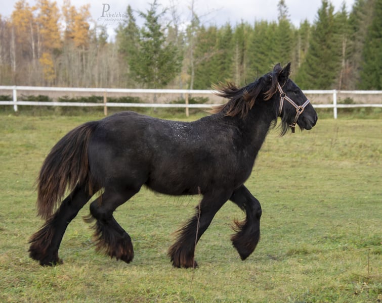 Meet this handsome young colt, born in September 2024, expected to grow to around 155 cm / 15hh. From day one, he’s shown a gentle and curious nature – a truly easy-going companion in every way. Born in September 2024, expected to mature around 155 cm / 15hh. 🐴✨ Arthur stands 13 hh/ 135cm as an 13 month old. This lovely boy has a very friendly and easy temperament, making him a pleasure to handle and work with. ✅ Health & Care: PSSM n/n; G/n (additional genetic tests available on request) DNA verified breeding, recorded in an Irish Cob Passport (FSIC ry) Healthy, vaccinated, dewormed, and regularly trimmed He is well-handled, can live both in a stable or electric-fenced paddock without issues. If you’re looking for a kind-hearted young colt with great potential, he’s the one! Located in Estonia, with transport available worldwide.