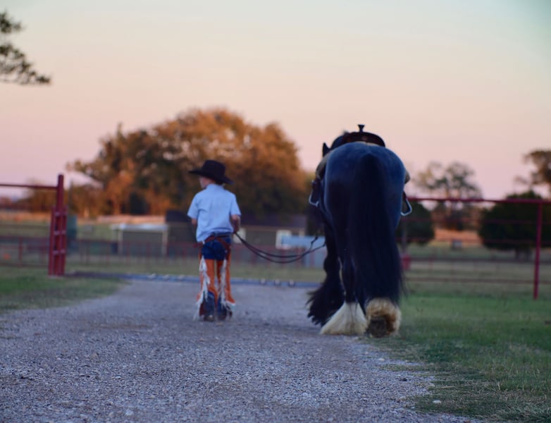 ⚜️ Heritage Winter Classic ⚜️ Trwa od teraz do PONIEDZIAŁKU | 29 grudnia – dostępny WYŁĄCZNIE na stronie HorseBid! Więcej informacji i rejestracja na stronie: www.Horsebid.com KONTAKT DO KONIARZA: BLC RANCH 972-249-5425 Lokalizacja: Grand Saline, Teksas RASA: Gypsy ZAREJESTROWANY: Tak Nazwa rejestrowa: Topaz Maść: Blue roan Wysokość: 14.3 hh Wiek: 6 lat Płeć: Wałach Poznaj Topaza Topaz to wyjątkowy ogier, który robi wrażenie i przyciąga spojrzenia wszędzie, gdzie się pojawi. Zarejestrowany w GVHS (Gypsy Vanner Horse Society) oraz IGEA (International Gypsy Equine Association). Dzięki pięknej maści blue roan i białym skarpetom nie znajdziesz drugiego takiego konia. Jego usposobienie i osobowość sprawiają, że jest ulubieńcem wszystkich. Topaz przeszedł już wszystko. Nie tylko jest wytrenowany do kładzenia się i siedzenia na polecenie, jak pies, ale ma również rozbudowane szkolenie pod siodłem i w zaprzegu, co czyni go koniem niezwykle wszechstronnym. Gwarantuję, że nie jeździsz na płynniejszym gypsy. Jego chód jest perfekcyjny, a jazda jak na bujanym fotelu, z jednym sygnałem nóg w płynnym galopie, kończącym się zatrzymaniem. Topaz zna oba swoje prowadzenia, reaguje na sygnały od nóg, potrafi pivotować w obu kierunkach jak quarter horse i ma świetny hamulec. Gdy mówimy, że przeszedł wszystko, mamy na myśli: nosił ogromną flagę na paradach, brał udział w wyzwaniach na przeszkodach przeciwko najlepszym quarter horses, jeździł do miasta, przechodził przez wodę, nosił nasze dzieci i wiele więcej – i robił to wszystko z łatwością. Może nie być dla każdego, ale był transportowany, stawał obok innych koni w boksach i jeździł z końmi z klaczami, zawsze zachowując się wzorowo. Możliwości z Topazem są nieograniczone. Uczyń go swoim głównym koniem do jazdy i hodowli. Tak jak jego imię – Northern Lights Topaz Gemstone – jest prawdziwym skarbem, który będzie świetnym dodatkiem dla każdego. Zdrowy i opanowany – negatywny na PSSM1/FIS. Aktualny u kowala, odrobaczony, z ważnym certyfikatem zdrowia i coggins.