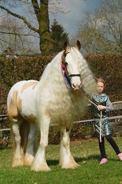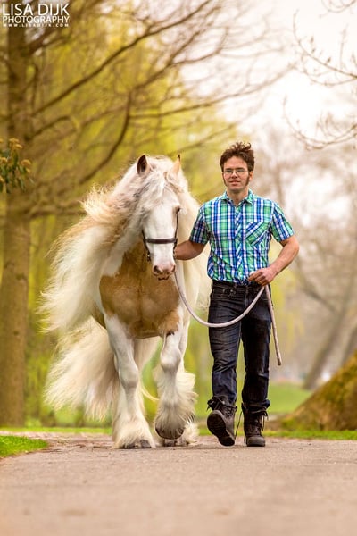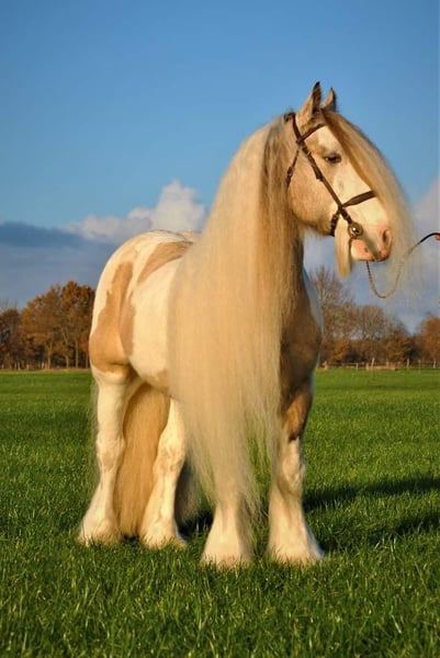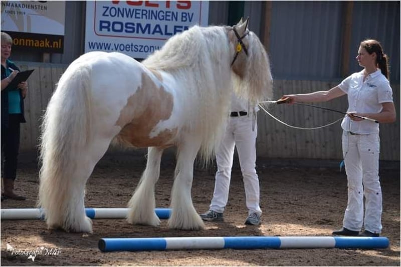 Legend from the Heavenlysmile Legend is inmiddels in Mexico! Gelukkig is Legend nog wel beschikbaar voor dekkingen middels diepvries sperma. Voor wie van een midden zwaar type tinker/ irish cob houdt! Legend staat bekend om zijn uiterst fijne karakter. Zeer rustig in handen, zie onze kinderen 😉 Het is een groot genot om met hem te mogen werken. Voor de koets een grote werklust en onvermoeibaar. Onder het zadel is hij M2+6 Legend is het "ouderwetse" midden zware type cob hij meet 1.58 Legend is ook röntgenologisch ggk, zijn sperma is van goede kwaliteit en hij is PSSM1 vrij. geheel VRIJ van mok rasp of zomerjeuk. Hij is voor meerdere stamboeken goedgekeurd voor de dekdienst. Eerste premie MODEL SPORT hengst. * ICS-NL * ZSSE-DE * NSvT * (het voormalige) TGCDHA * Hij laat ruime sterke beweging zien en behaalde bij het ZSSE een 9 voor zijn galop in de werkproef voor de koets. een zwaar type cob met zeer soepele gangen. Legend is op zijn kleur getest EeAaCrZTOTO Dit wil zeggen Silver Valk/Buckskin en Homozygoot voor bont. Hij zal dus ALTIJD een bont veulen geven. EN 50% kans om het Creme gen door te geven: valk palomino smokeyblack Op een merrie met creme: perlino cremello smokeycream EN 50% kans dat het veulen ook het silvergen zal dragen! Hij heeft dus echte toverballen 😛 Zijn veulens zijn sterke grote dieren met zeer soepele beweging en een gouden karakter. In vergelijking tot de "luxere" merries verzwaard hij de veulens mooi en bevallen de merries altijd vlot. Hij heeft veulens met merries van 1.20 (juiste type) en allen vlot bevallen, Legend geeft dus een hoog geboortegemak!! Hij geeft zijn stempel mooi mee, type beweging werklust karakter en een berg haar. Legend is via diepvriessperma beschikbaar Voor verdere informatie over de KI graag even bellen of pb. Het dekgeld bedraagt 675 Euro (excl btw en overige kosten)