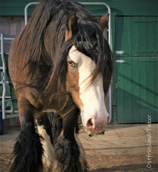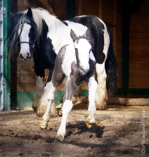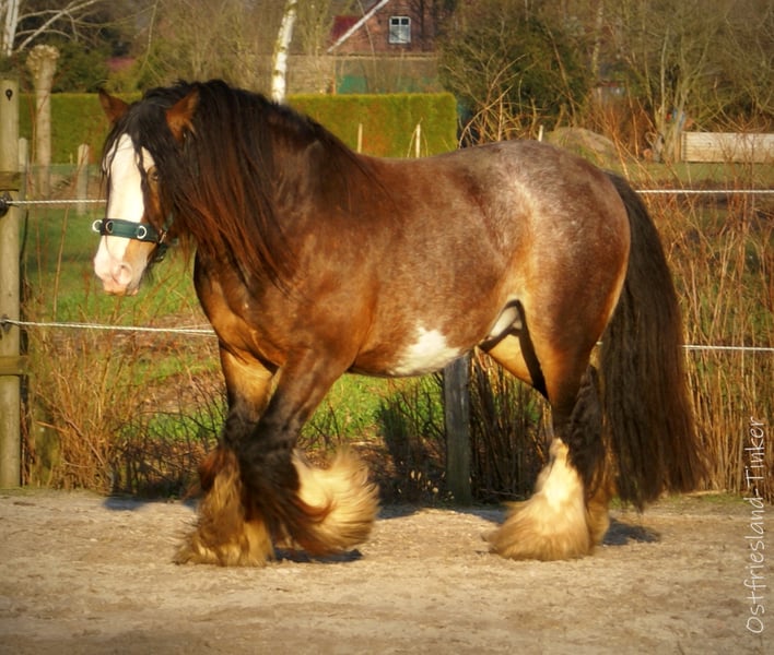 Unser Hengst *Ostfriesland's Chocolate Chips* steht ab Mai wieder einigen gesunden Stuten zur Verfügung. Er ist eingetragen und gekört ins HB1 der Irish Cob Society Nederland, und besitzt 3 Generationen gute Abstammung. Seine Nachkommen sind bereits hoch prämiert. Chips ist typvoll gebaut, hat ein fleißiges Wesen und ist für einen Hengst sehr unkompliziert im Umgang. Er ist reinerbig für Schwarz (es fallen keine Füchse) , vererbt sein schönes Wildbraun und zu 50% ein Tigergen. Mit gescheckten Stuten hat er schon wunderschöne Pintaloosa-Fohlen gebracht, aber auch Einfarbige sind möglich. Mit seinen 1,48m passt er zu Ponystuten, als auch Kleinpferden. Seiner Nachzucht gibt er etwas mehr an Größe mit. Ebenso ist er Pssm1 frei getestet und hat kein Problem mit Mauke. Bei Fragen rufen Sie mich gern an. Die Fotos zeigen einige seiner Fohlen, seinen Vater Camaro und seine Mutter Princess.