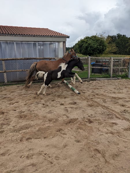 *War schon reserviert, die Käuferin meldet sich nicht mehr deshalb nochmal neu* Absolut Platz vor Preis, ich habe mit Absicht eine etwas höhere Summe angesetzt damit klar ist er wird nicht verschachert* Wir verkaufen unseren Rocky, geboren 17.6.25 Mama ist eine tolle Quater Haflinger Stute die bei uns in der Pädagogik eingesetzt wird. Papa ist ein großer Tinker. Rocky und seine Mama kamen vom Gardasee zu uns als er ein paar Wochen alt war. Rocky ist ein lustiger Frechdachs mit Flausen im Kopf. Er spielt sehr gerne mit unseren Shetty Jungs, die älteren Damen lässt er (meistens) brav in Ruhe. Er lebt in einer kleinen Herde im Offenstall. Er kennt Hufe kratzen und das Führen üben wir gerade. Bei Ausritten geht er frei mit seiner Mama mit oder bleibt auch schon super mit den anderen im Stall. Er kennt Kinder jeden Alters, Hunde,Hühner, Fahrzeuge, laufen bei Dunkelheit,... Er ist absolut unerschrocken, neugierig und dabei menschenbezogen. Er braucht klare Ansagen und natürlich weiterhin eine gute Ausbildung dann wird er ein perfekter Partner. Er ist jetzt schon fast 120cm groß wird also sicherlich größer als seine Mama mit 140cm Bei ehrlichem Interesse freuen wir uns über Kontakt und einen Besuch bei uns. Rocky kann Ende des Jahres ausziehen.