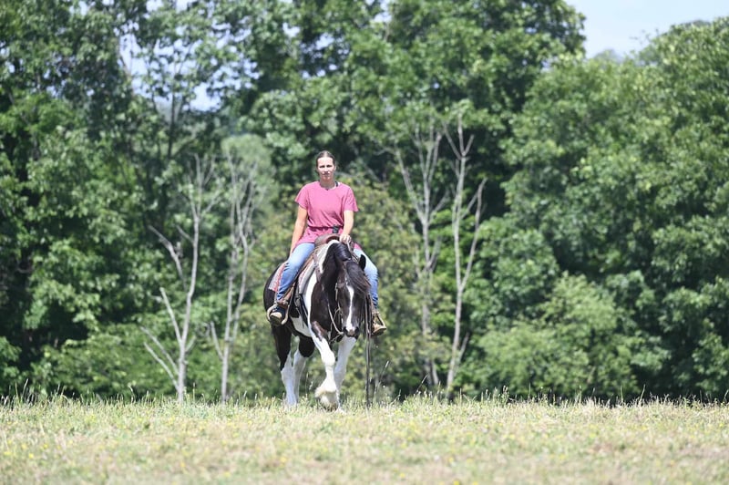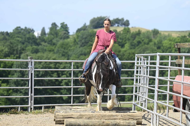 ONLINE AUCTION Place your bids at www.PlatinumEquineAuction.com Starting Bid $3500 Auction ends July 28th, 2024 Need a new saddle? Check out White Rock Saddles on our website or Facebook! Desty is a 9yr old, 15H, 1200lb, ¾Gypsy Vanner ¼Friesian mare. Desty is a well built, well broke, Gorgeous mare. She trail rides great, she loves the creek and is not bothered by the mud, brush, logs ect. She takes her time and crosses anything with ease. Desty is a pretty mover and has 3 nice gaits, she walks relaxed and calm. She jogs smoothly and has a very nice easy lope. We recently started jumping her and she really enjoys it! Desty is a beautiful well mannered mare, she is quiet in the barn and is easy to handle. Desty sells 100% sound with no vices. Please call or text Ray Raber 330-275-2877 FMI. ONLINE AUCTION Place your bids at www.PlatinumEquineAuction.com Starting Bid $3500 Auction ends July 28th, 2024 Need a new saddle? Check out White Rock Saddles on our website or Facebook!