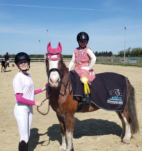 Hello, if everything fits, I will have to part with my 14-year-old Tinker gelding Disney, which I do with a heavy heart. I simply feel that I can no longer do him justice and that he might be better off somewhere else, where he receives more attention and work. A little about him: Disney is 1.40 meters tall and has a very loyal character, especially when he knows he is appreciated, respected, and loved. When he doesn’t get the activity he needs, he clearly shows it. He doesn’t do things like kicking or running through fences but may nip lightly or run off somewhere, and it’s obvious that he’s in a bad mood. I’ve had him for three years; he was given to us from the horse shelter. He was surrendered there because he needs to be near the sea due to his equine asthma. We live about 6 km from the North Sea and have never had any problems. I’ve taken him on many trail rides, and he has always been very well-behaved, as expected. In 2024, I will ride him in his first competition (we both had little experience), and we managed to place second in a Jump and Run. Most of my competition experience has been in jumping, from 40 cm to 80 cm. In a 75 cm jumping class, we scored a 7.7 and finished in 6th place. He also consistently shows effort in dressage. He has three nice GGA (good riding qualities) that could still be developed further. On the outdoor arena, he is well-behaved and focused. He’s comfortable with water crossings and does everything that’s asked. He also works well with children from age two upwards, as I sometimes give lessons to my siblings. Whether in the indoor arena or outdoors, he’s always attentive and cautious. He notices if children have difficulties and is a very gentle pony. Unfortunately, riding out is a bit challenging with him; he tends to get excited and sometimes bolts, whether in a group or alone. I found this too dangerous after trying it again last week. He often tries to turn around or runs into obstacles. When led, he is the sweetest pony in the field. He is familiar with both open stalls and box stalls with daily turnout. However, we switched him from an open stall to a box stall with daily turnout because he didn’t really settle overnight and was often grumpy and tired during work. I wish for the best home for him and hope there is someone who will give him the same chance I did. Priority goes to the horse, not the price! Feel free to contact me if you have any questions.